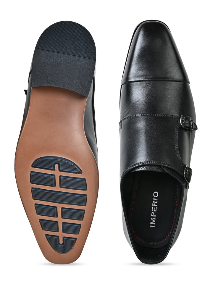 Introducing Imperio by Regal Shoes Men's Formal Leather Monk Strap Shoes—a timeless and sophisticated choice for the discerning gentleman. Crafted to perfection, these shoes seamlessly blend classic style with modern elegance for a distinguished look. Elevate your formal attire with the distinctive double monk strap design. The buckle closure adds a touch of refinement, making these shoes a standout choice for formal occasions. Crafted from high-quality leather, these monk strap shoes exude luxury and durability. From boardroom meetings to weddings, these monk strap shoes effortlessly transition between various formal settings. The brogue toe design adds a classic and timeless element to these formal shoes. Whether paired with a tailored suit, dress trousers, or even business-casual attire, these monk strap shoes add a touch of sophistication to any outfit. Step into the world of refined style with Imperio Men's Formal Leather Monk Strap Shoes. Embrace the sophistication of the classic monk strap design—order your pair now and make a statement at your next formal affair!
