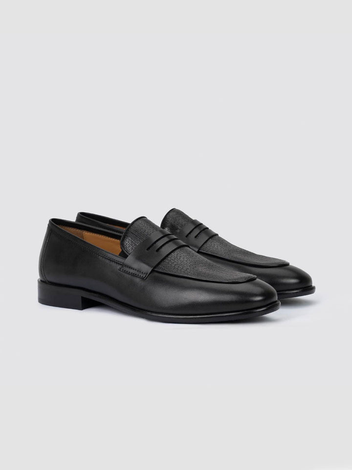 Elevate your style with this sleek Troy Loafer, featuring a distinctive printed apron detail and a unique saddle design. The cushioned footbed ensures all-day comfort, blending fashion with function. Whether for casual or formal wear, this loafer adds a refined touch to any outfit.