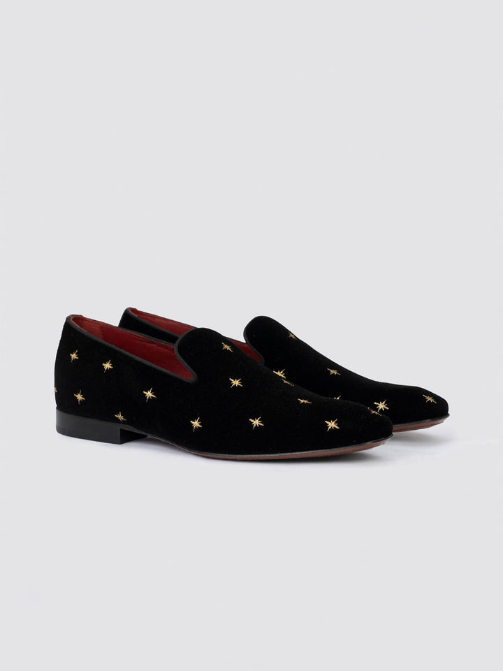 Add a touch of celestial elegance to your footwear collection with our Jaime Loafer, beautifully adorned with intricate embroidery design. Crafted from rich, soft velvet, these loafers offer a plush feel and a striking appearance that elevates your outfit. With a cushioned insole for added comfort, you can confidently wear these loafers from day to night.