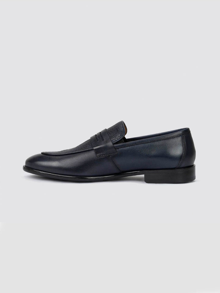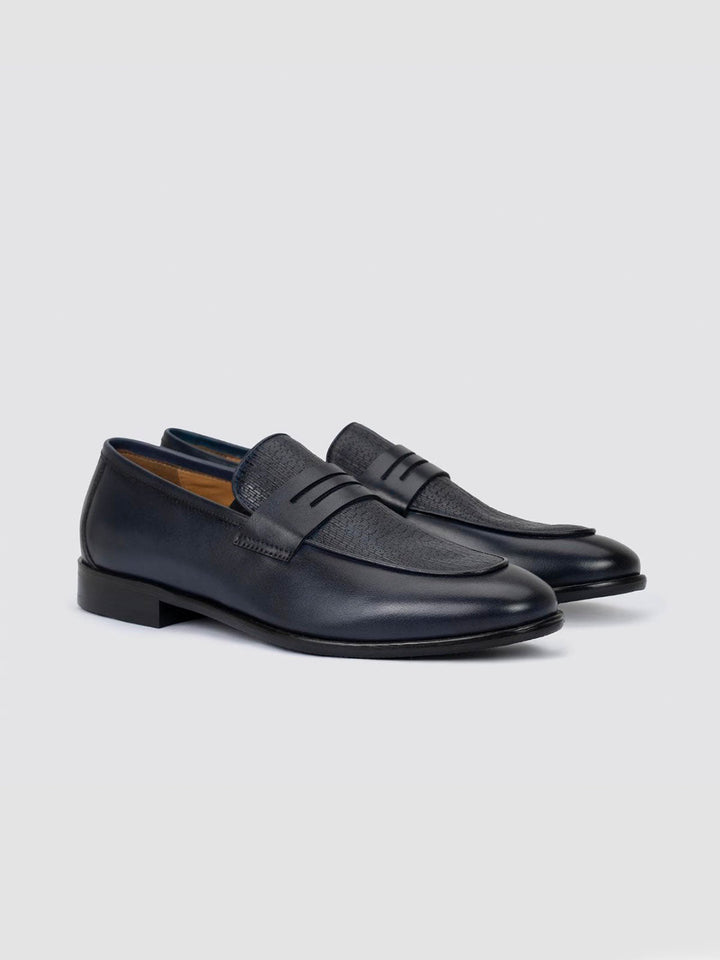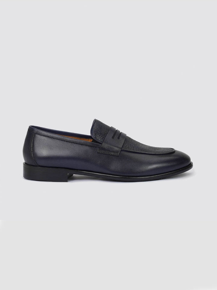 Elevate your style with this sleek Troy Loafer, featuring a distinctive printed apron detail and a unique saddle design. The cushioned footbed ensures all-day comfort, blending fashion with function. Whether for casual or formal wear, this loafer adds a refined touch to any outfit.
