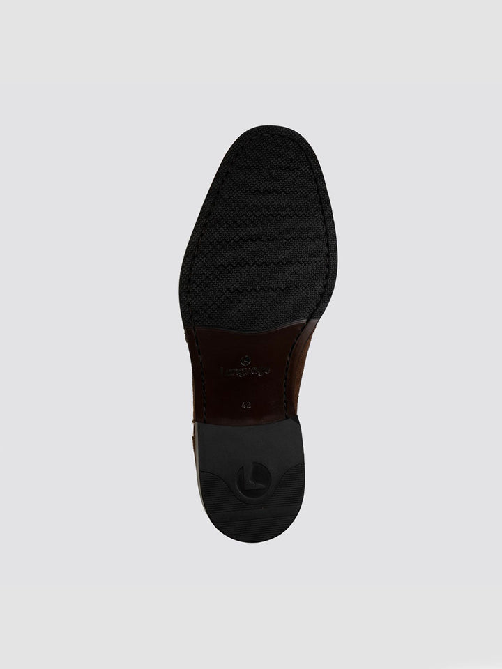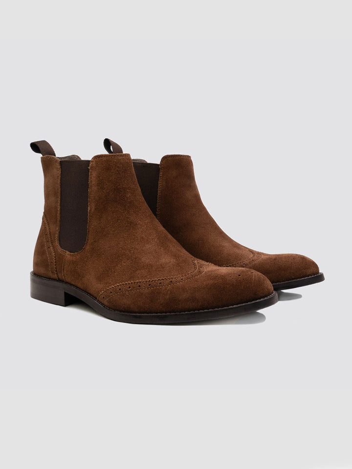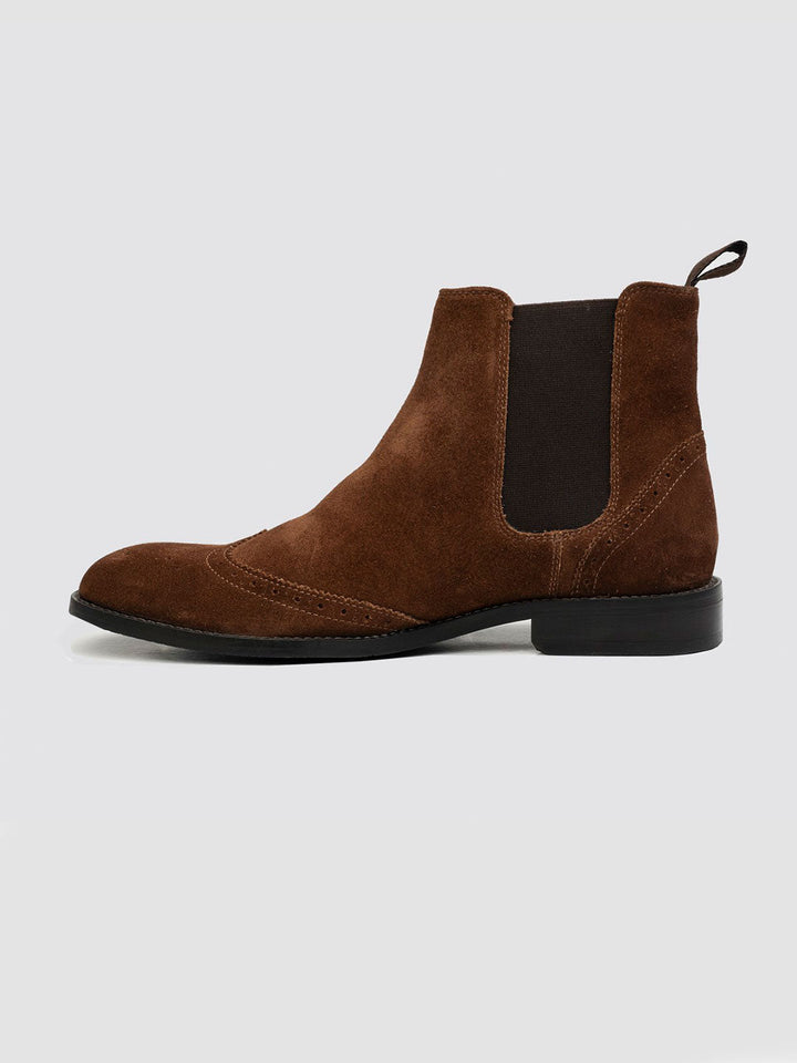 The Evander Boot is constructed of a suede finish and intricate brogue detailing, effortlessly combining style and versatility. Easy to wear, the leather lining ensures breathability and moisture absorption, making them ideal for various occasions. The cushioned non-removable leather footbed offers enduring comfort, while the TR sole provides traction and durability. These boot's craftsmanship, converges with comfort for a refined stride in every step.