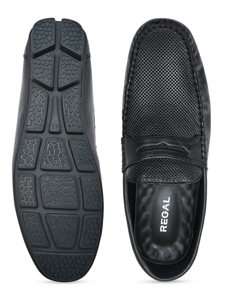 Regal Black Men Casual Laser Cut Loafers