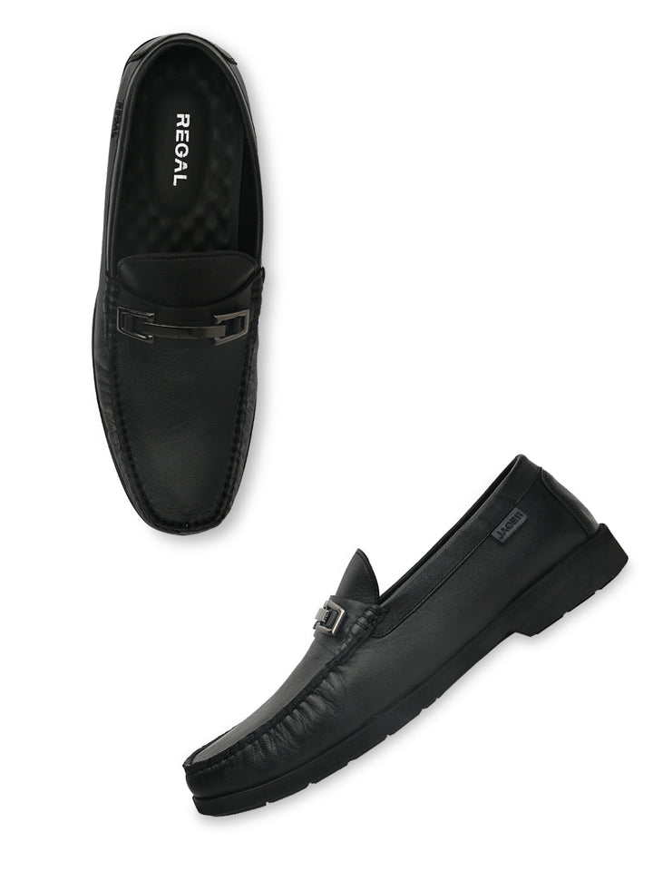 Introducing Regal Men Leather Buckled Casual Slip-On Shoes, the epitome of refined style and effortless sophistication. Crafted from premium leather, these slip-ons boast a sleek and timeless design, perfect for any occasion. The standout feature is the elegant buckle detail, adding a touch of refinement and charm to your ensemble. Designed for both comfort and durability, these slip-on shoes offer a snug fit and a sturdy construction, ensuring long-lasting wear and all-day comfort. The slip-on style provides convenience, making them ideal for busy days on the go, whether you're heading to the office, a dinner date, or a weekend outing.