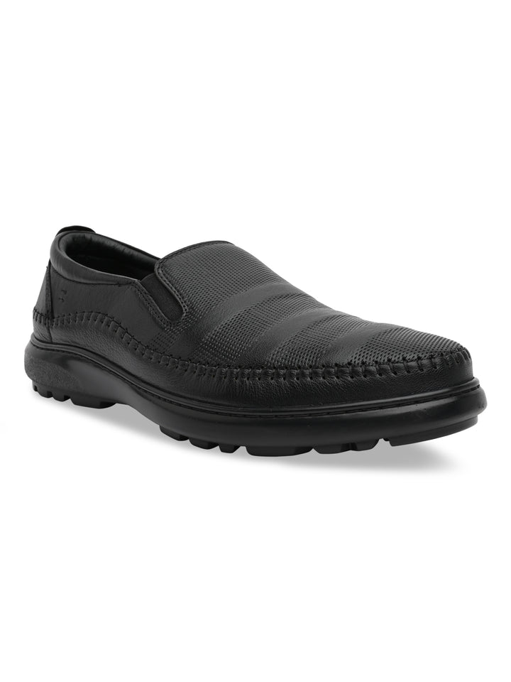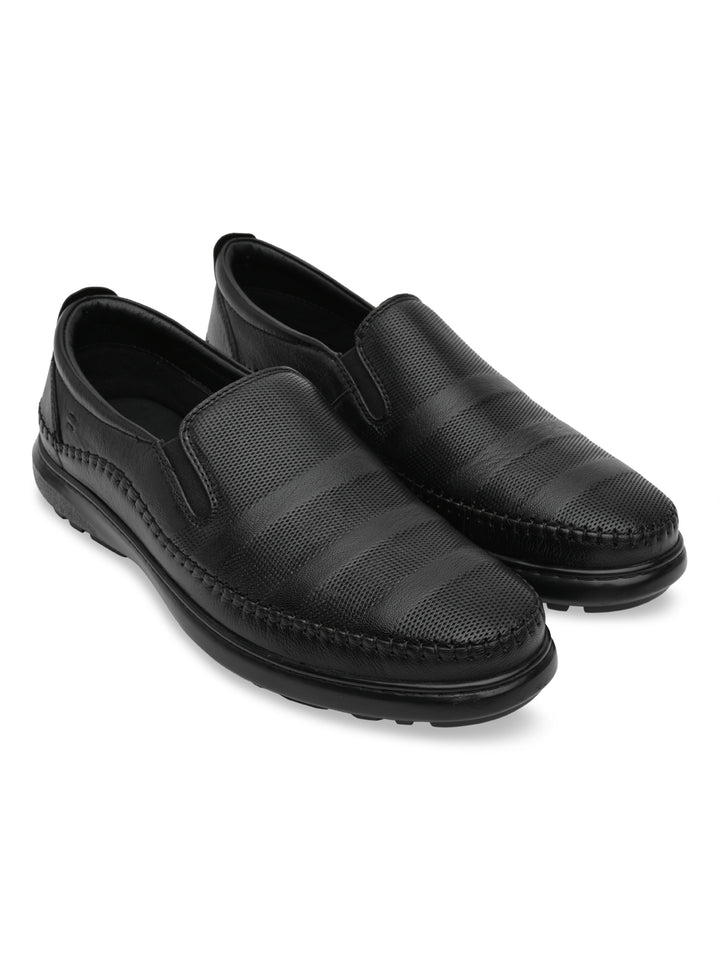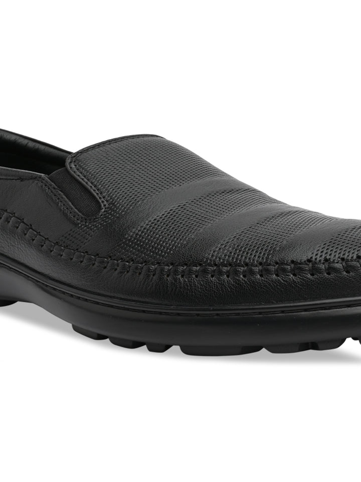 Regal Black Mens Patterned Leather Casual Slip Ons