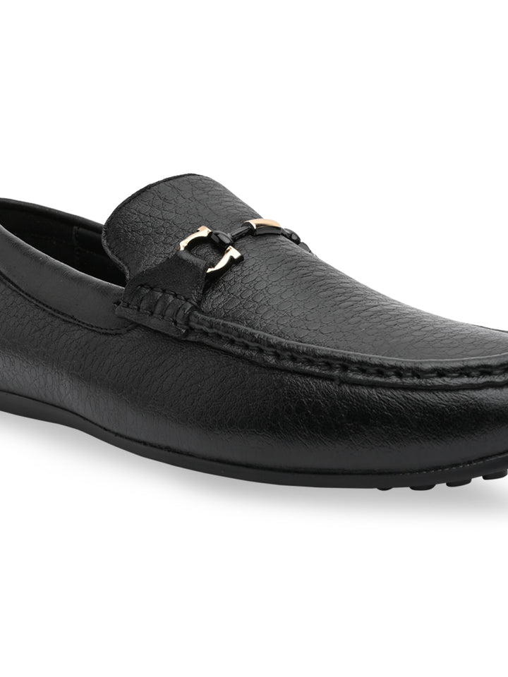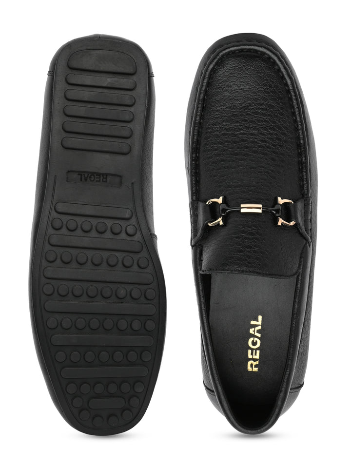 Regal Black Mens Textured Leather Buckled Loafers