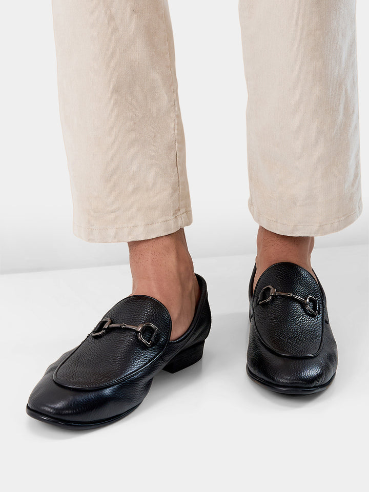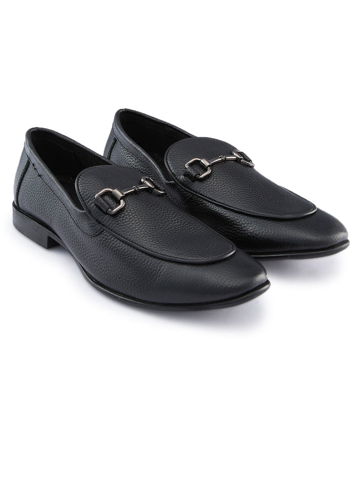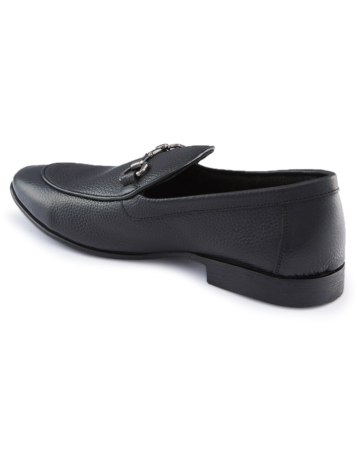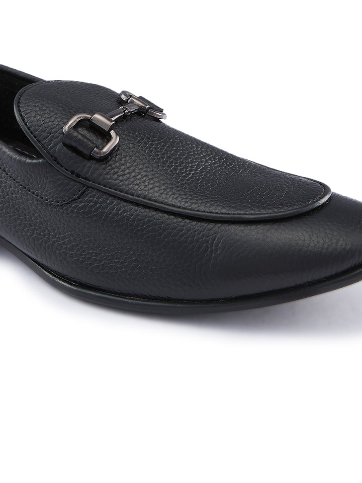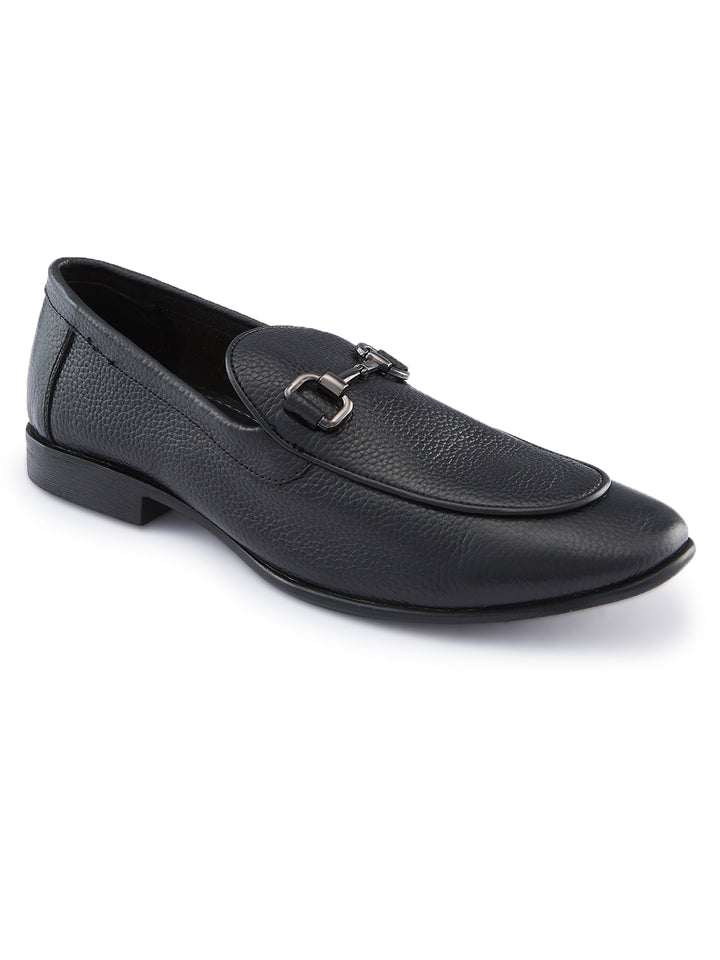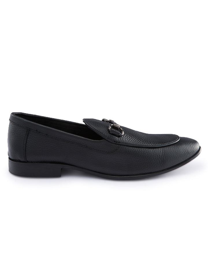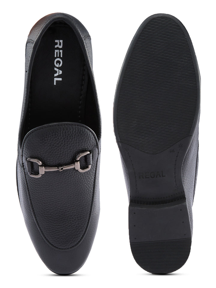 Regal Black Mens Textured Leather Buckled Slip Ons