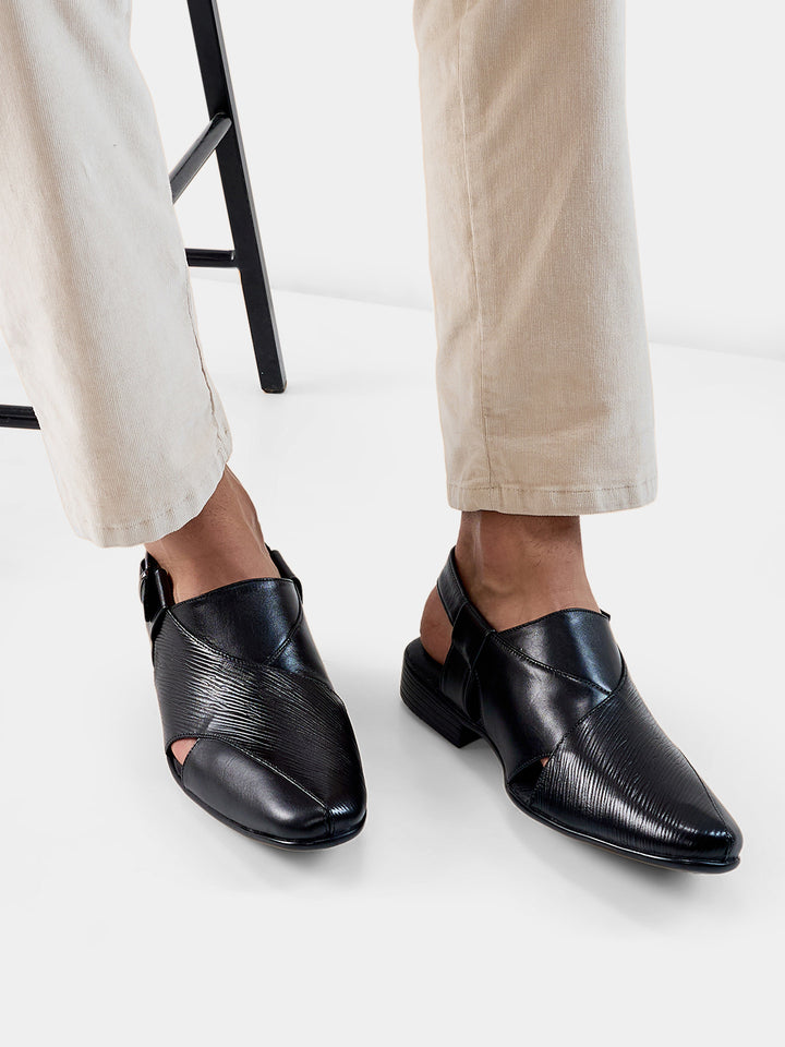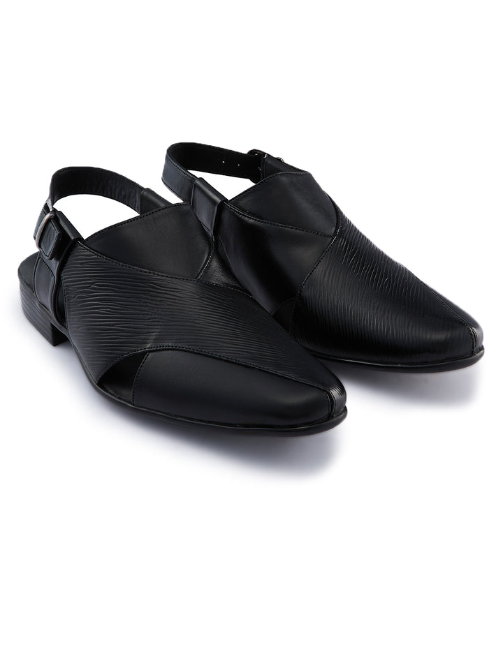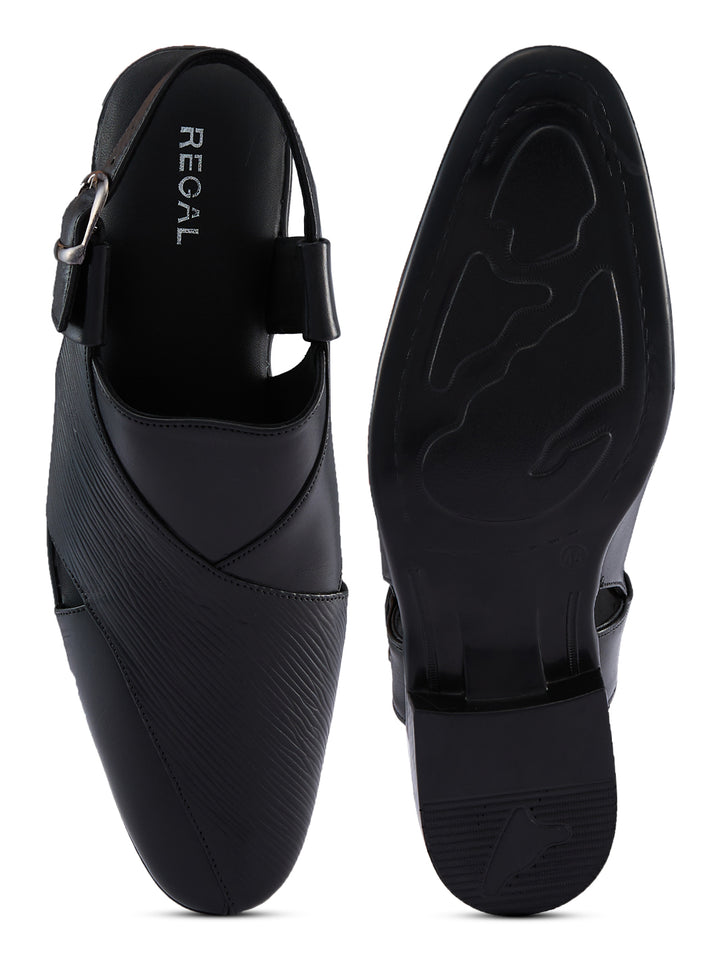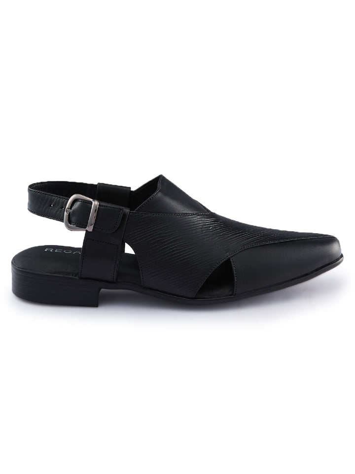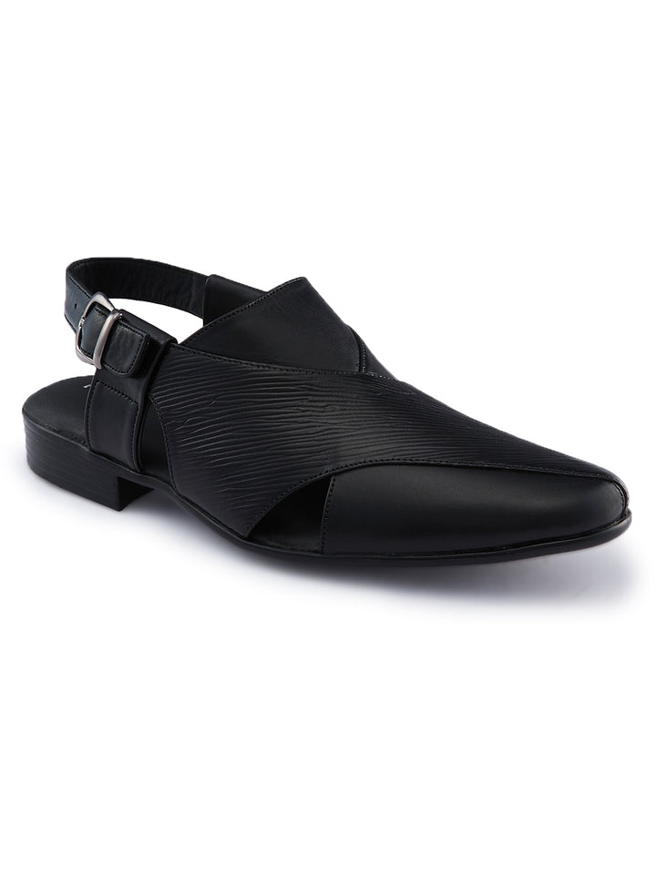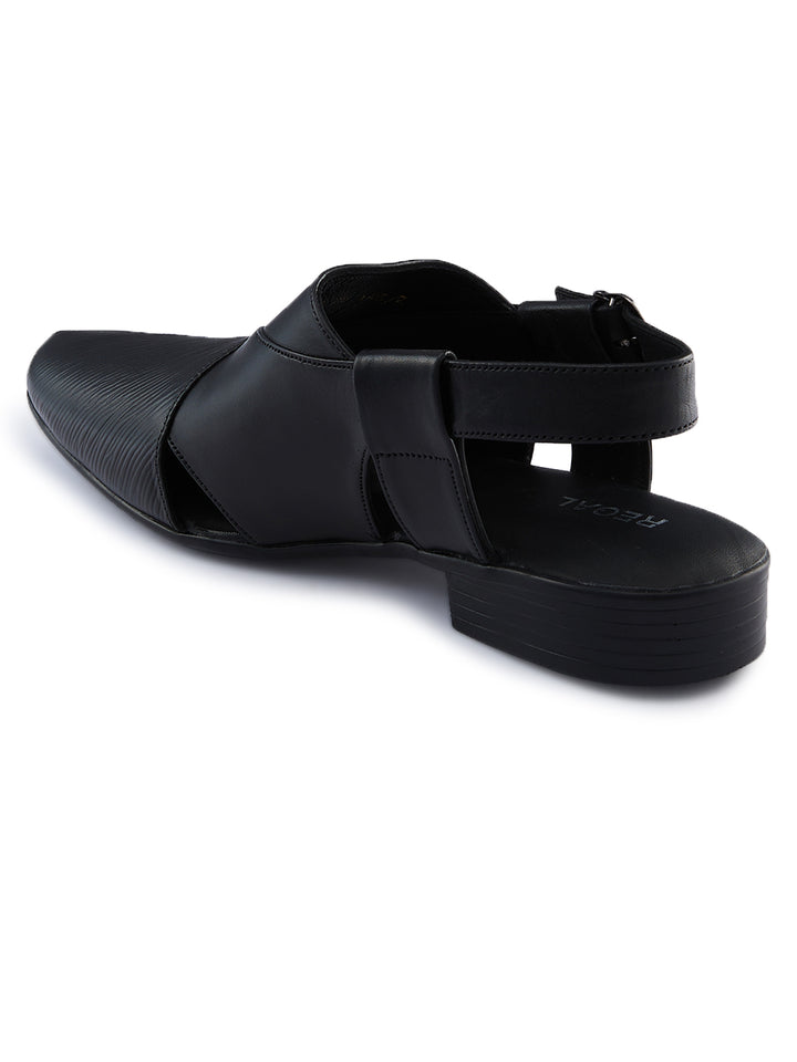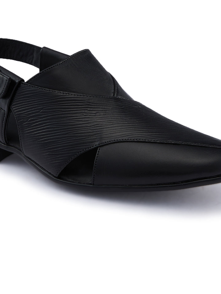 Regal Black Mens Textured Leather Stylish Ethnic Sandals