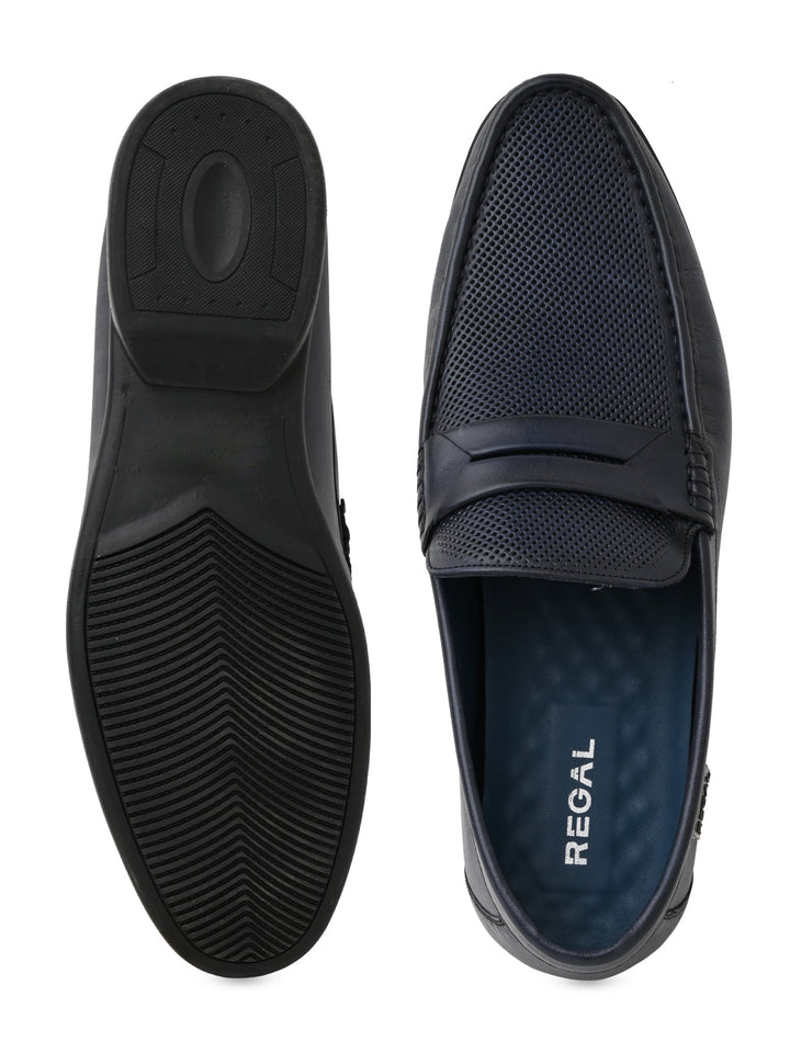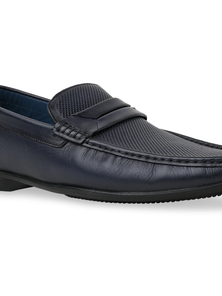 Regal Blue Men Textured Leather Saddled Slip Ons