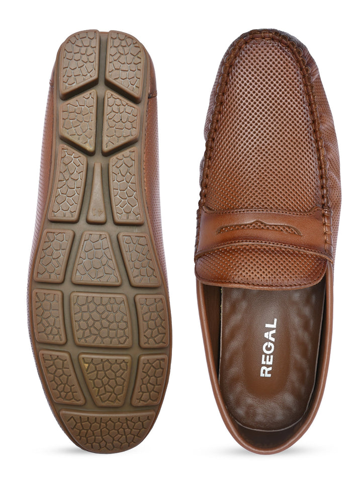 Regal Brown Men Casual Laser Cut Loafers