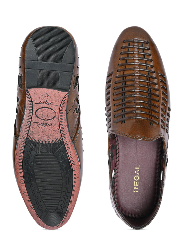 Regal brown men's ethnic slip ons
