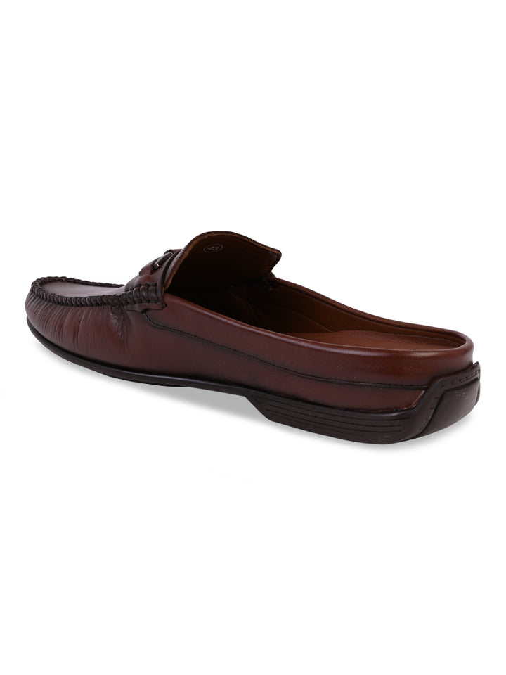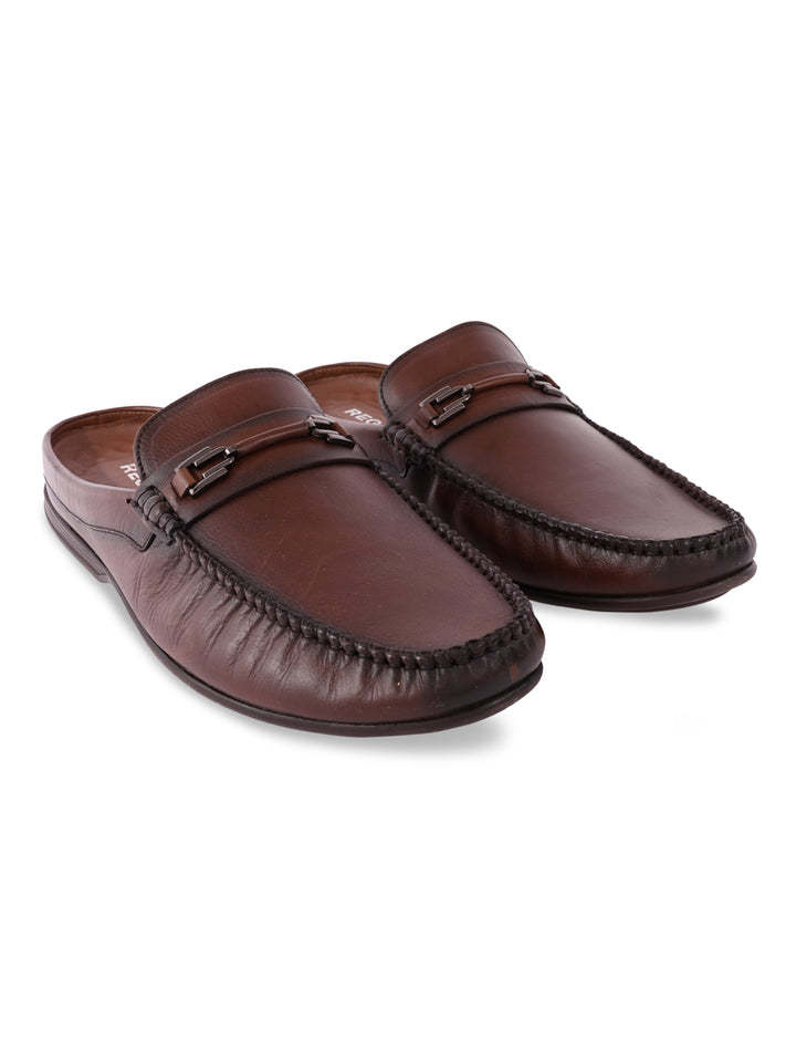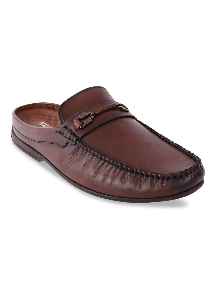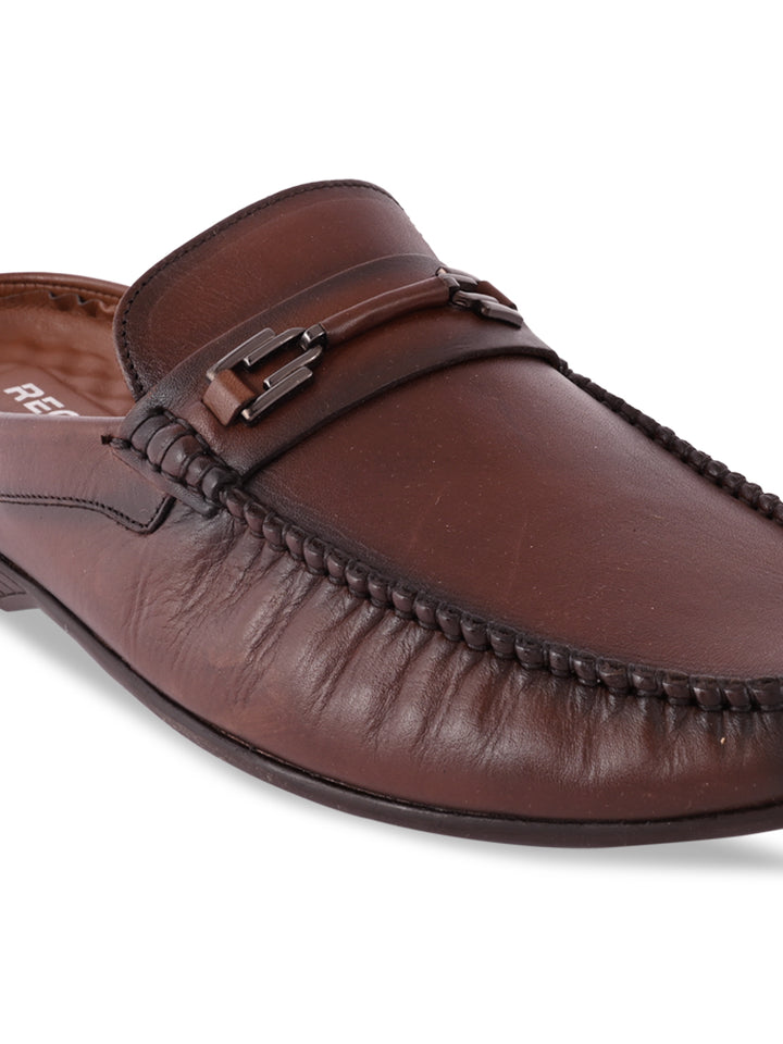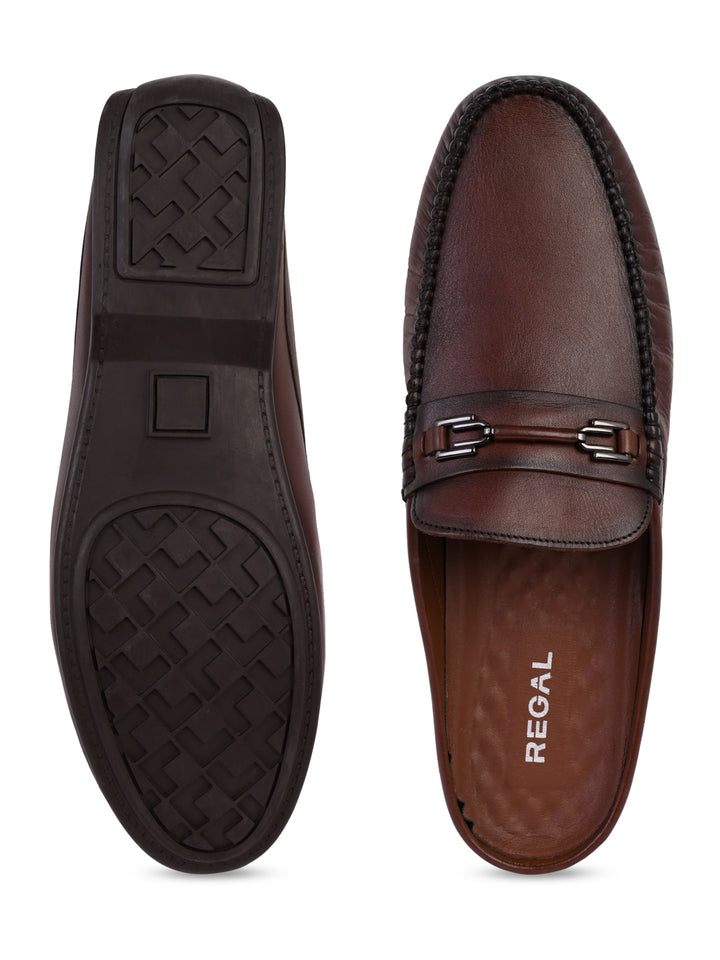 Regal Brown Men Leather Buckled Mules
