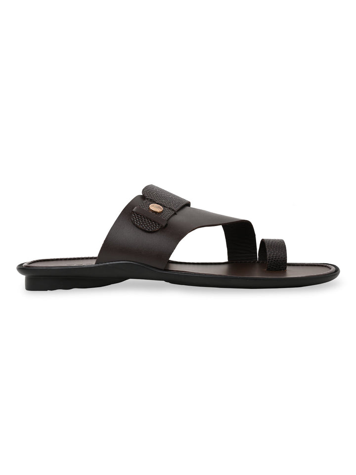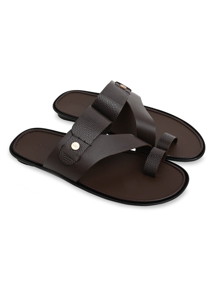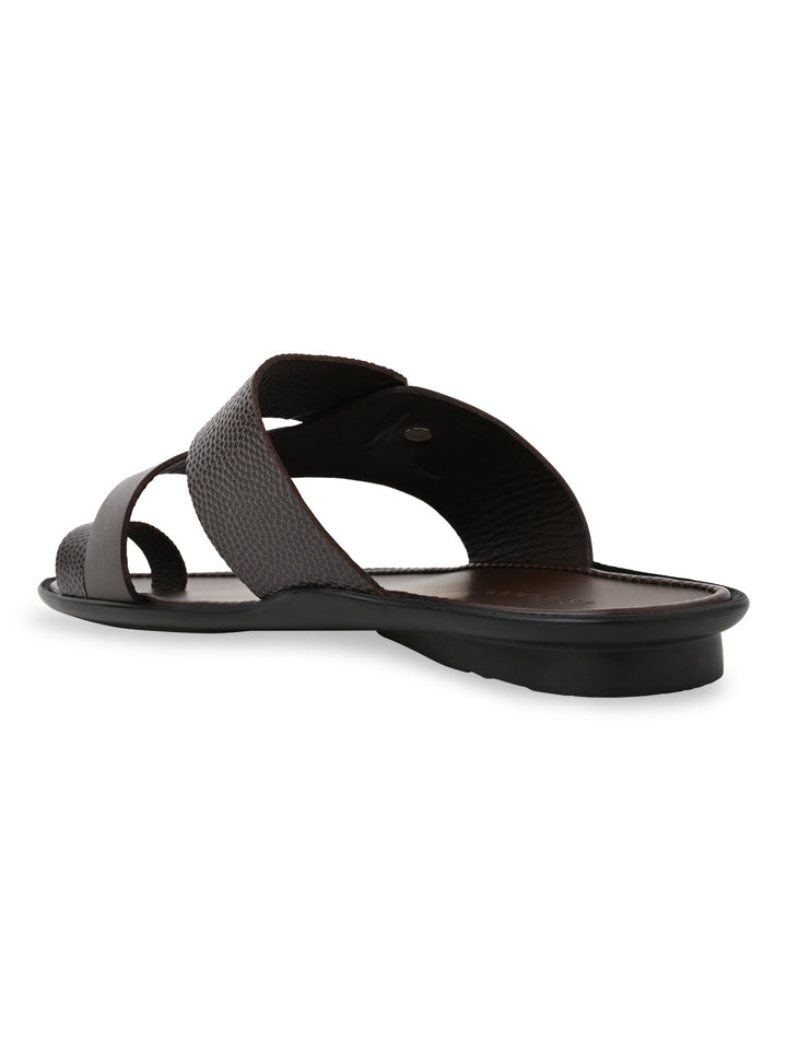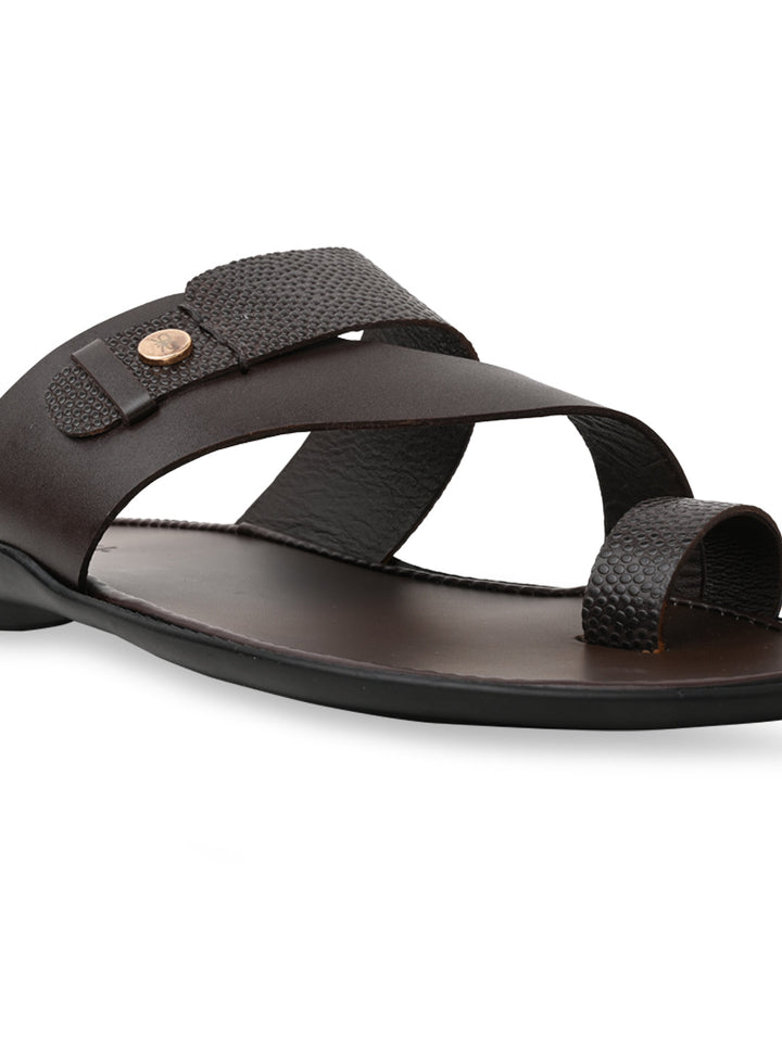Regal Brown Men Textured Leather Sandals