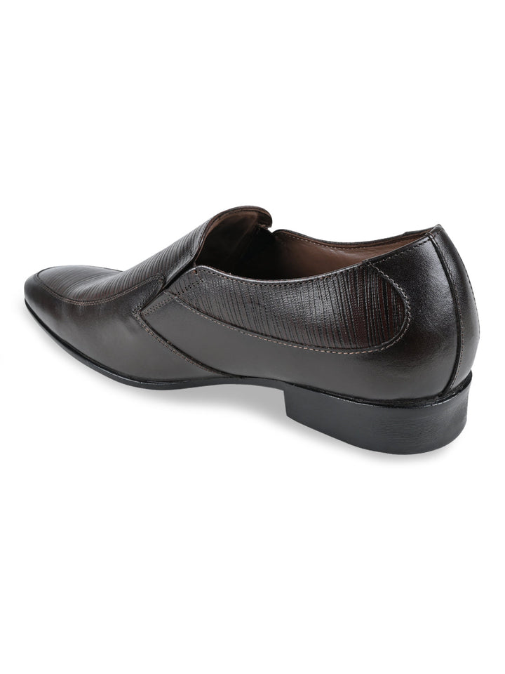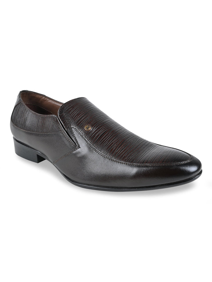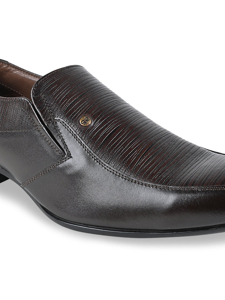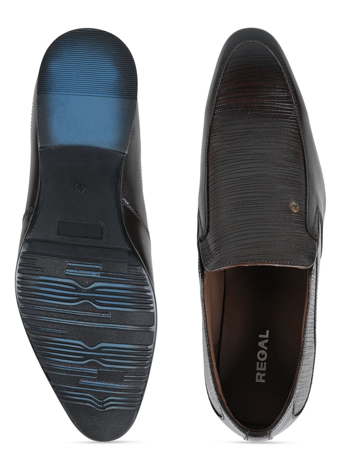 Regal Brown Men Textured Leather Slip Ons