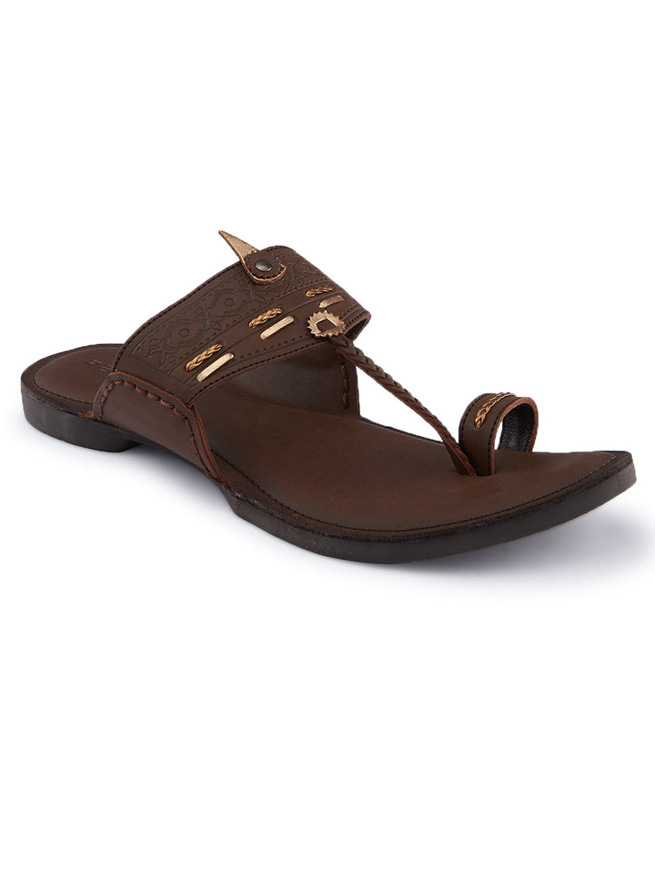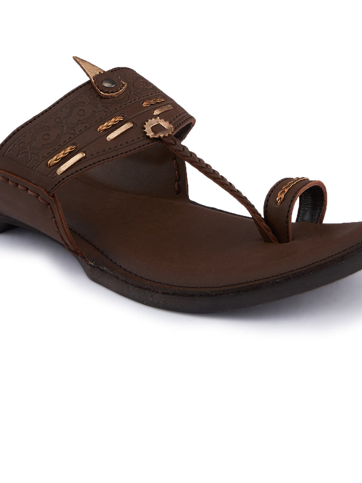 Regal Brown Mens Stylish Leather Embossed Kolhapuris