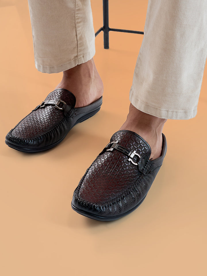 A sleek buckle detail adds statement style to these genuine leather mules. Lightweight, cushioned, and supportive, they’re the perfect pick for celebrations where comfort meets cultural flair. The bund-toe style is a classic traditional Indian men's footwear design that works for weddings, pujas and festive occasions.