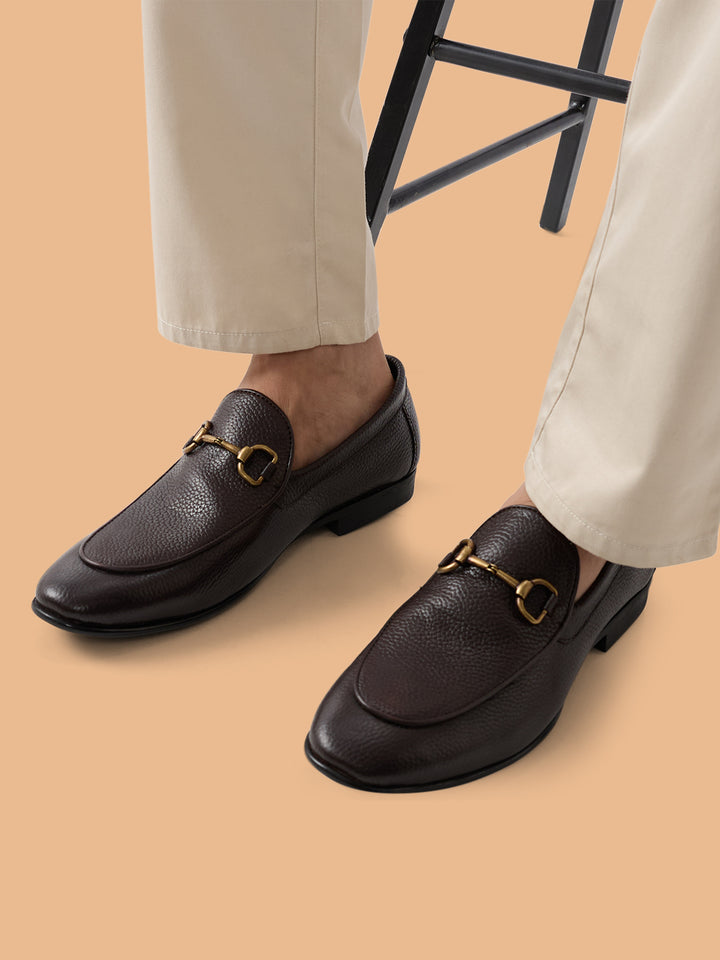 These textured leather slip-on shoes from Regal are designed for modern professionals who want ease without compromising on style. The sleek buckle detail adds a refined touch, making them ideal for sharp formal looks. Lightweight and comfortable for all-day wear, they transition effortlessly from office hours to evening plans. A smart wardrobe addition for men who value sophistication with convenience.