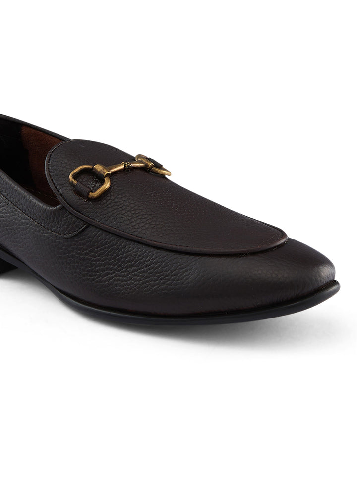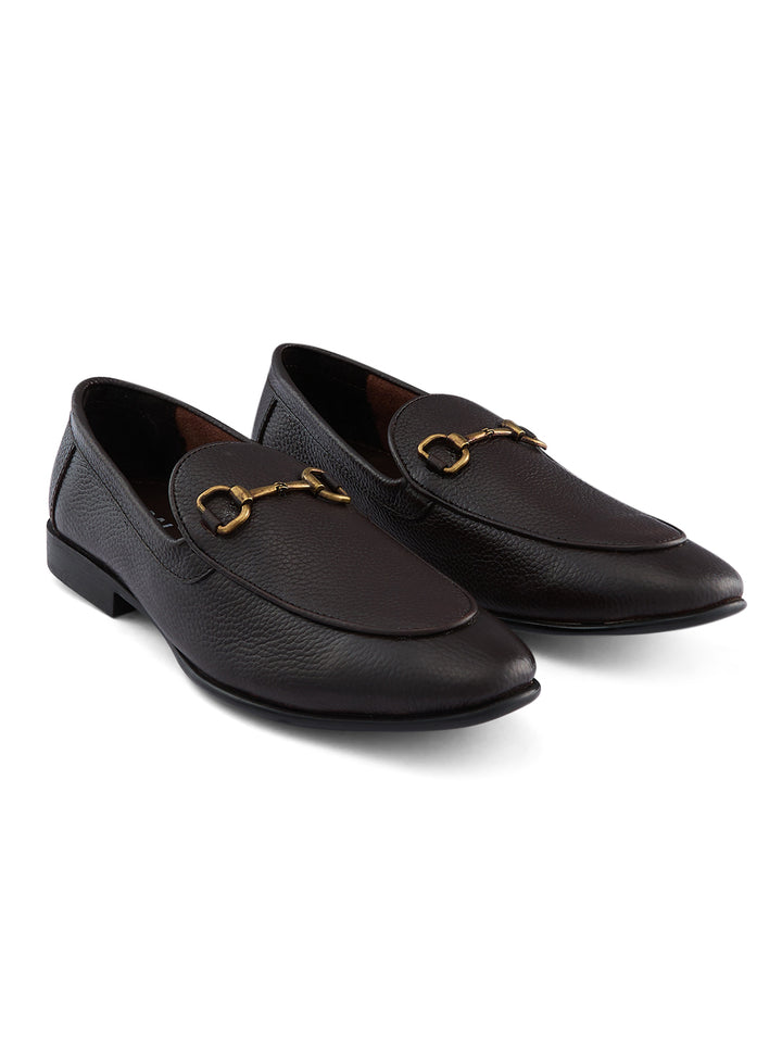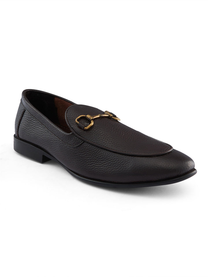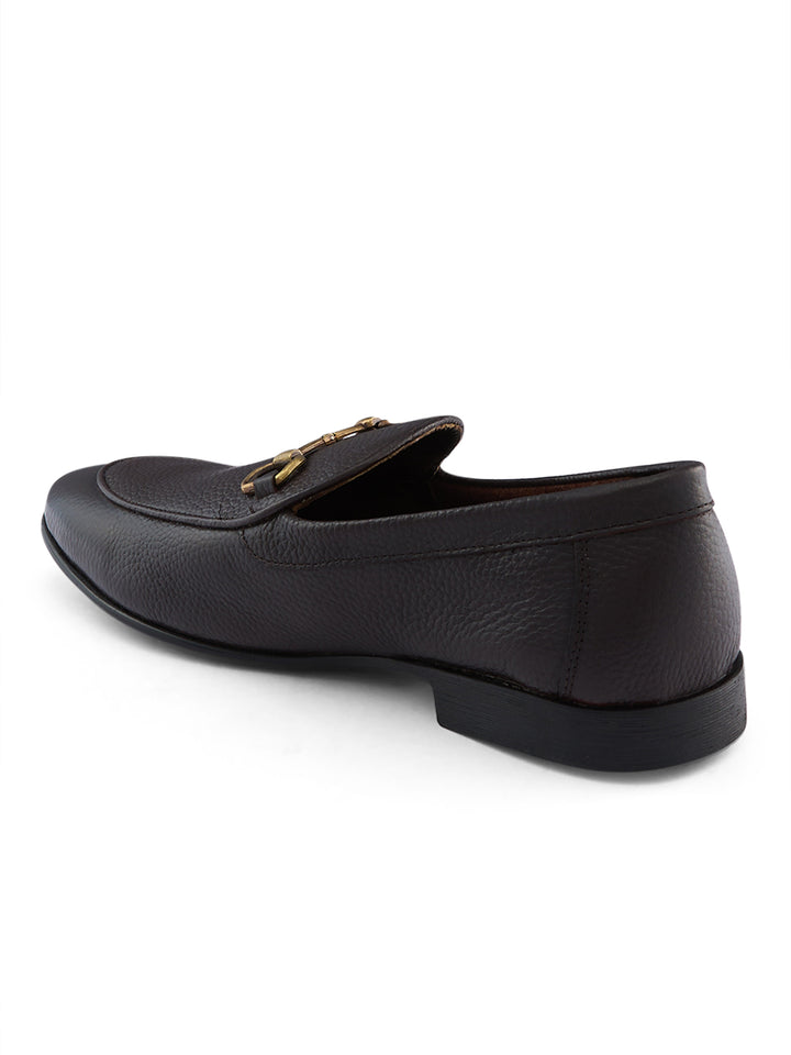 Regal Brown Mens Textured Leather Buckled Slip Ons