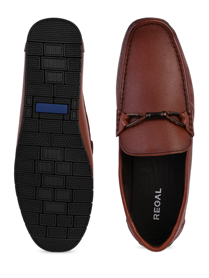 Regal Tan Men Flexi Leather Buckled Loafers