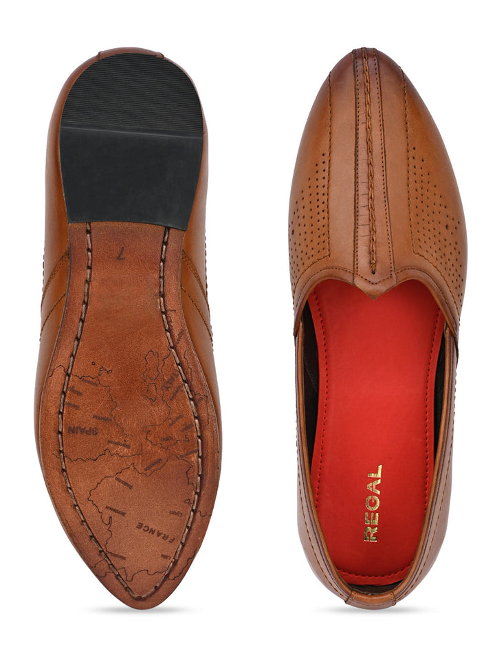 Introducing Regal Men Leather Laser Cut Traditional Jutties, the epitome of cultural charm and contemporary style. Crafted with precision from high-quality leather, these jutties showcase intricate laser-cut detailing, adding a touch of sophistication to your ensemble. Inspired by traditional craftsmanship, these Indian shoes feature a timeless design that pays homage to Indian heritage while embracing modern trends. The intricate patterns evoke a sense of elegance and refinement, making them perfect for special occasions or adding a unique flair to your everyday look.