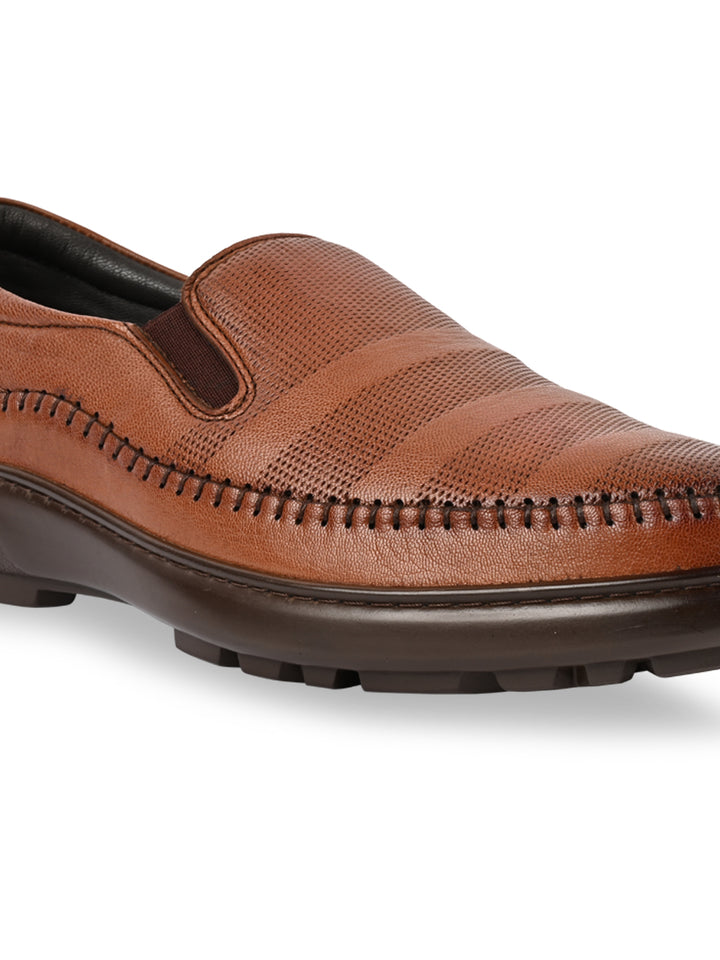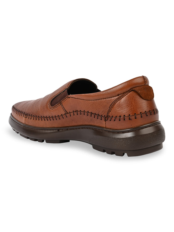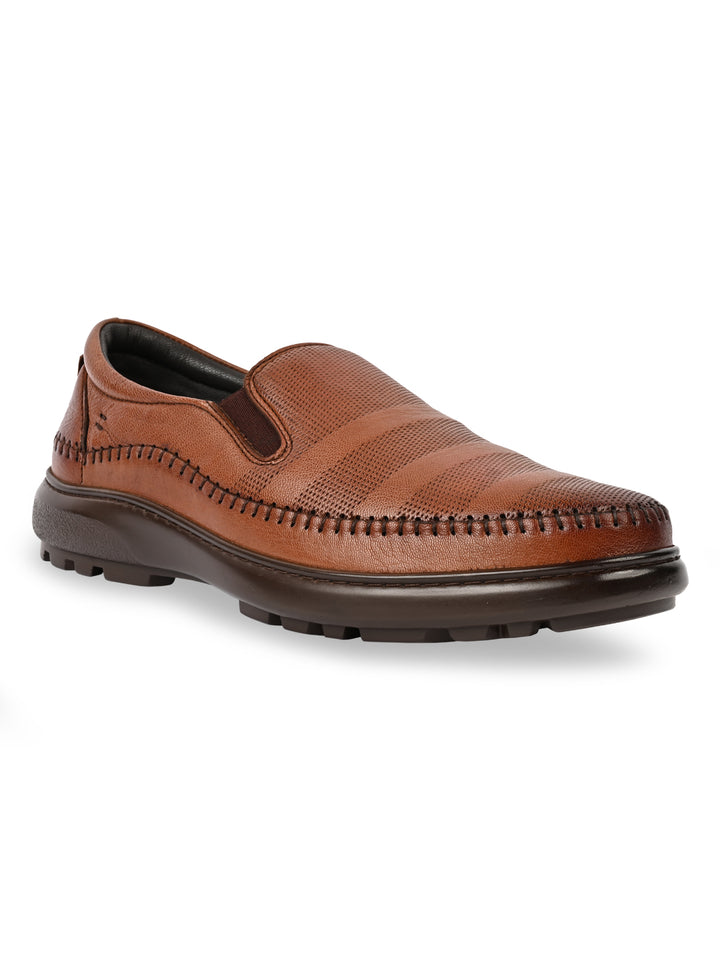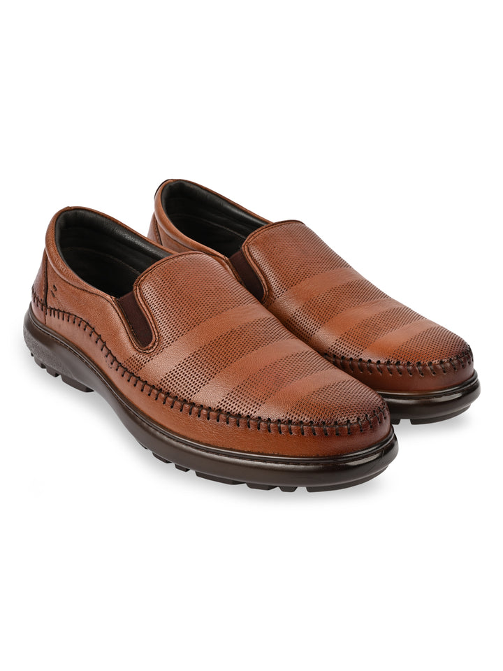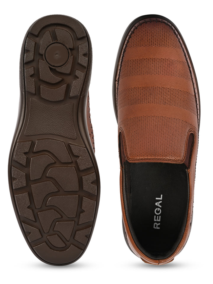 Regal Tan Mens Patterned Leather Casual Slip Ons