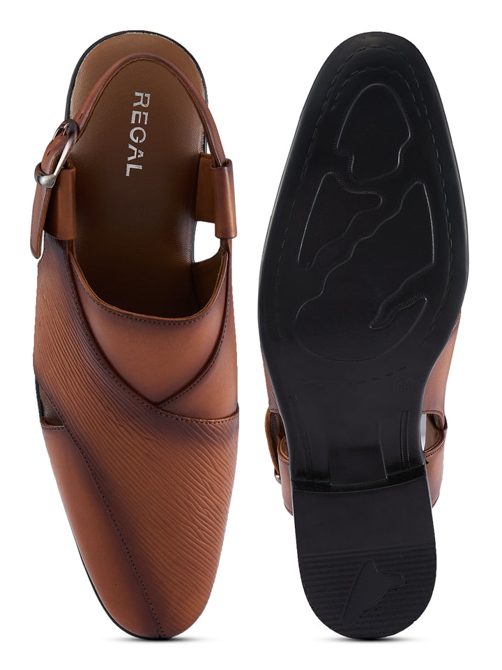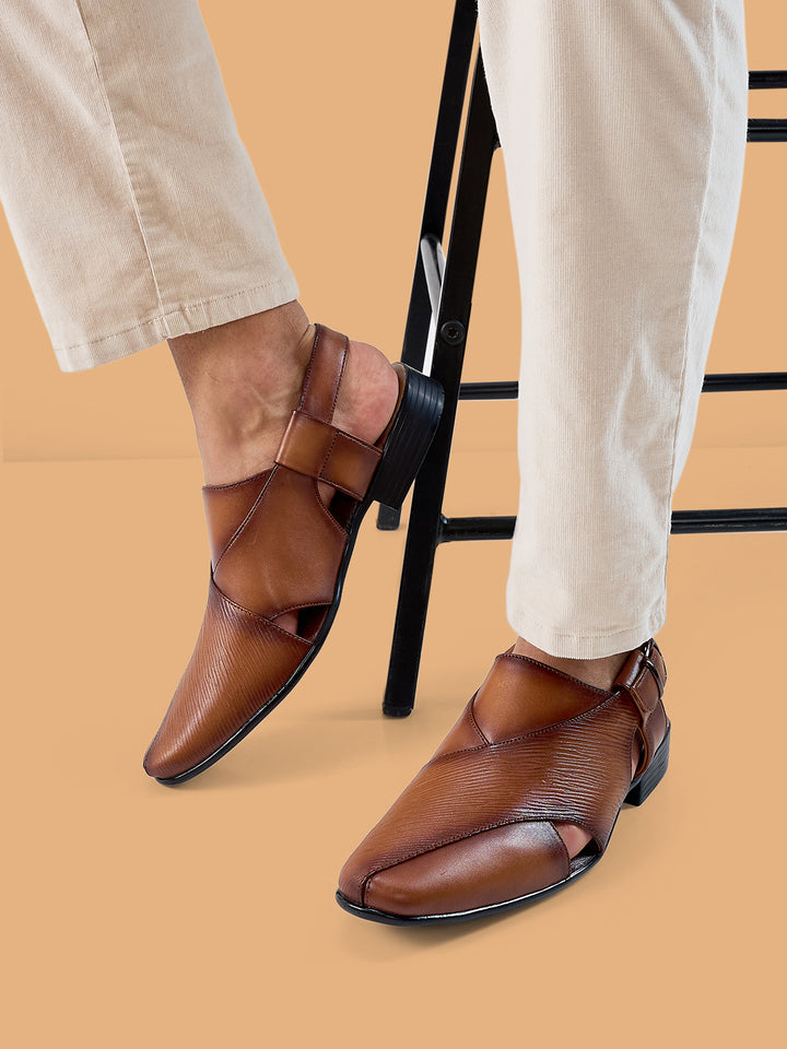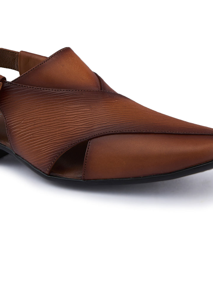 Regal Tan Mens Textured Leather Stylish Ethnic Sandals