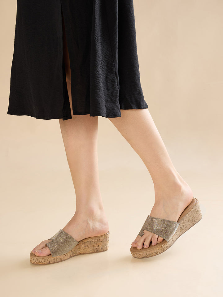 Rocia By Regal Antique Gold Women Casual Wedge Sandals