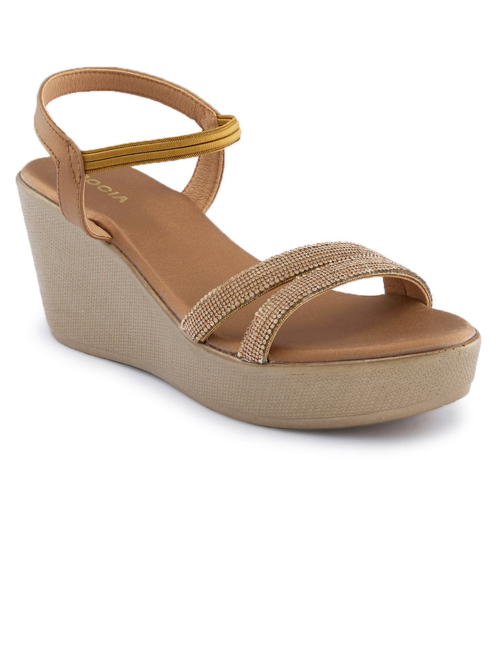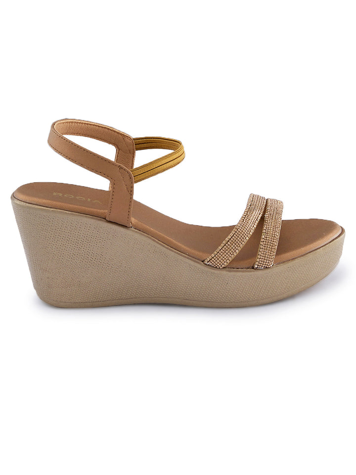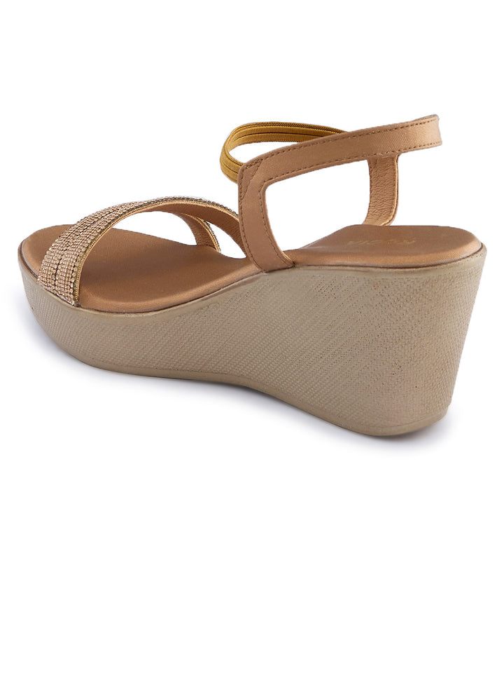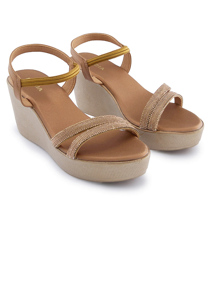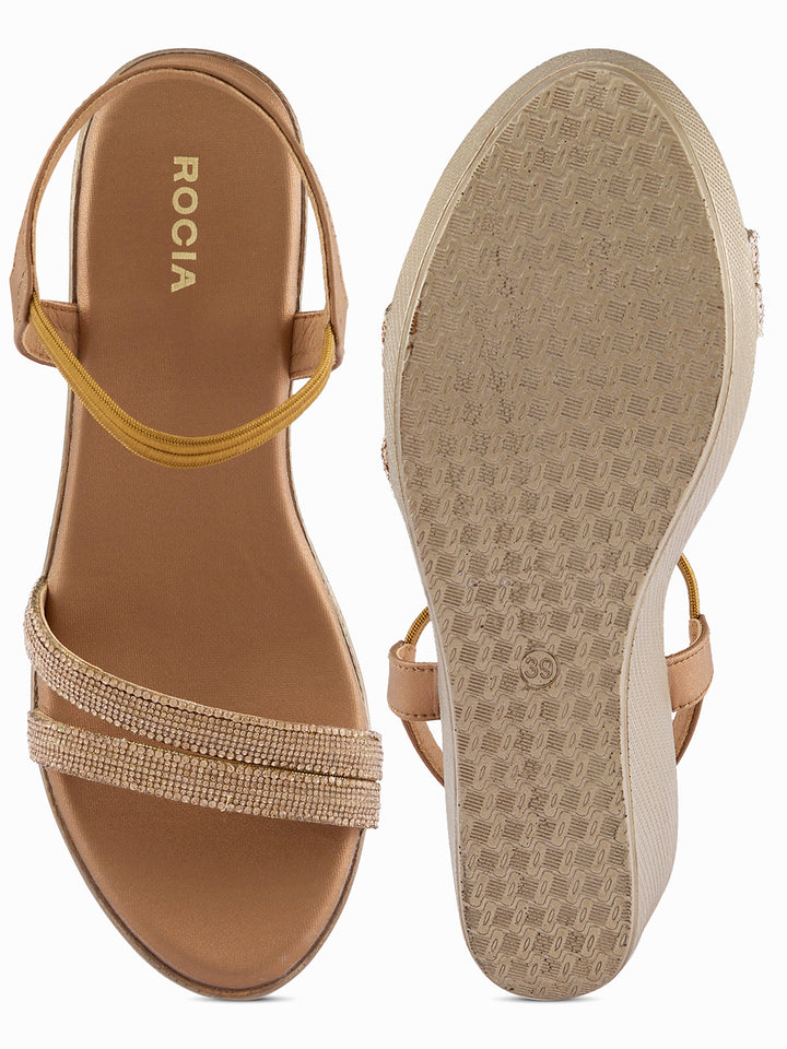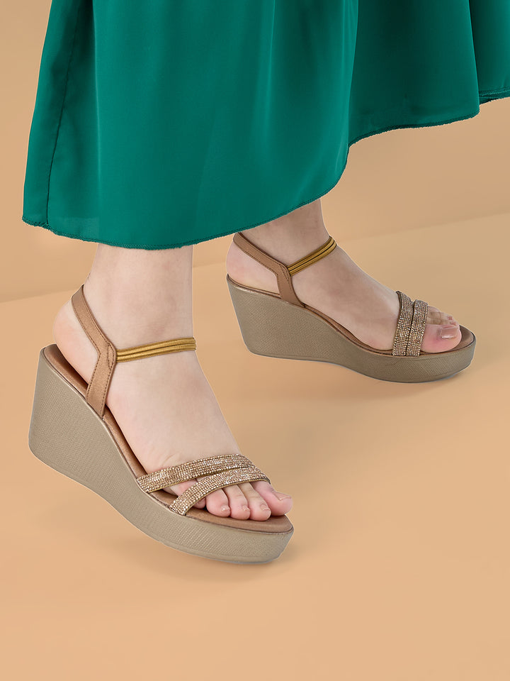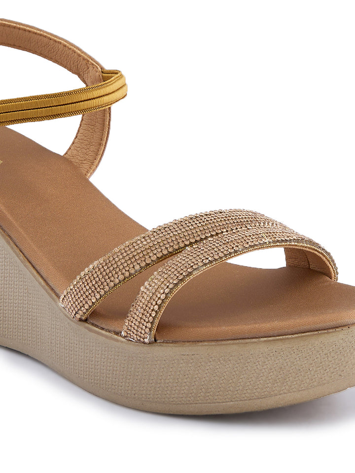 Rocia By Regal Antique Gold Women Diamond Embellished Platform Sandals