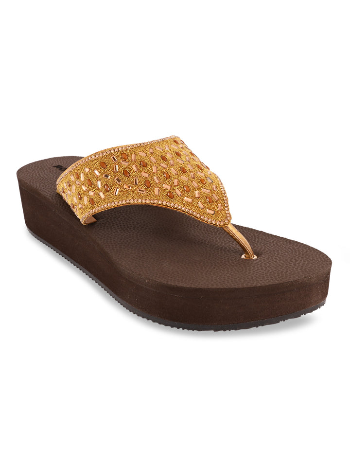 Rocia By Regal Antique Gold Women Embellished Wedges