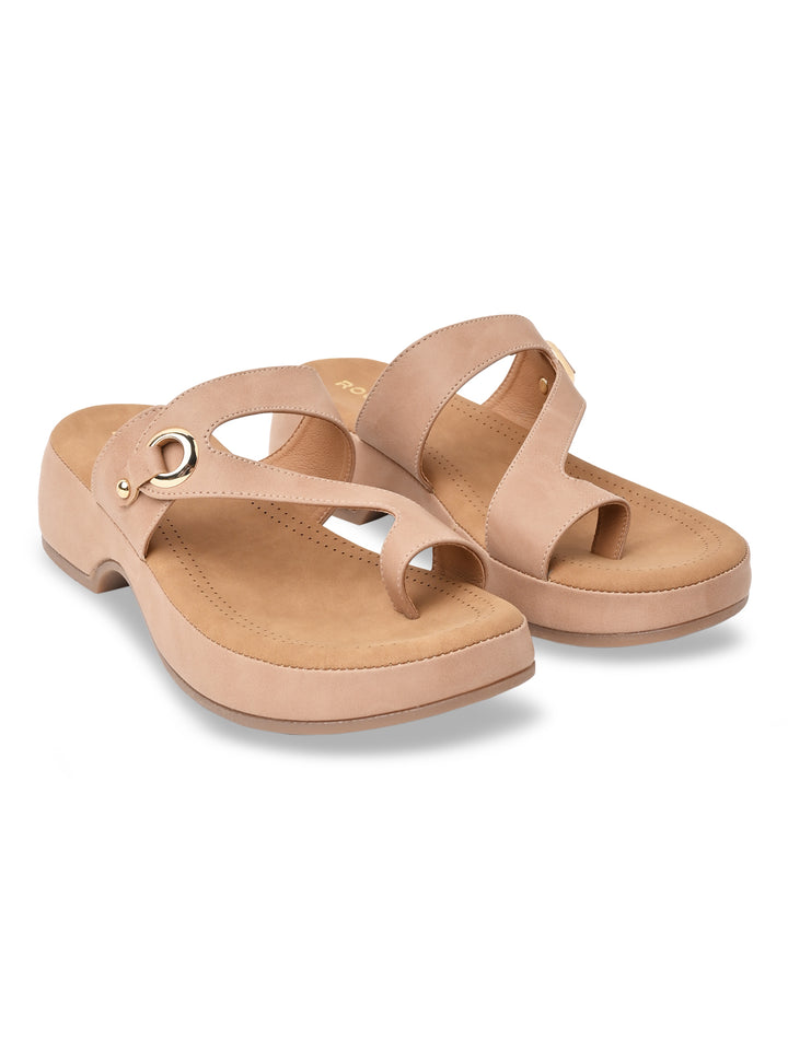 Rocia By Regal Beige Women Comfort One Toe Sandal
