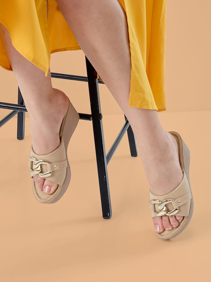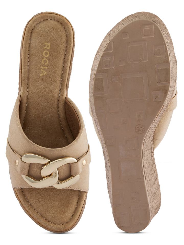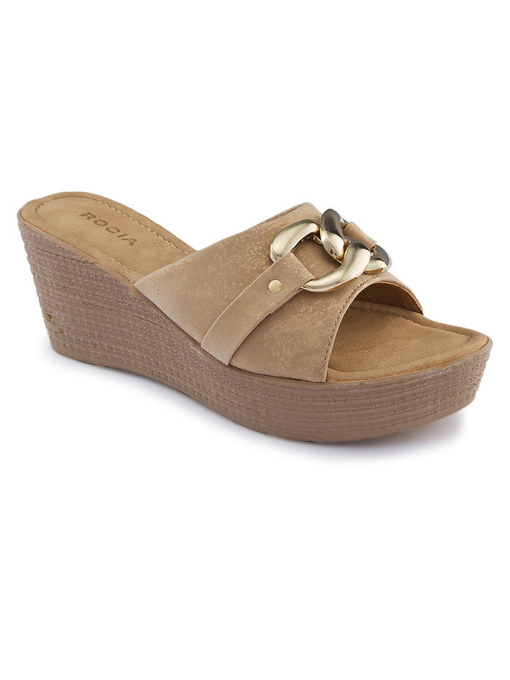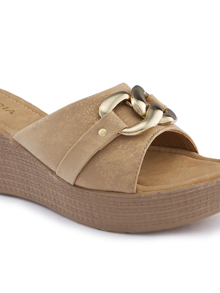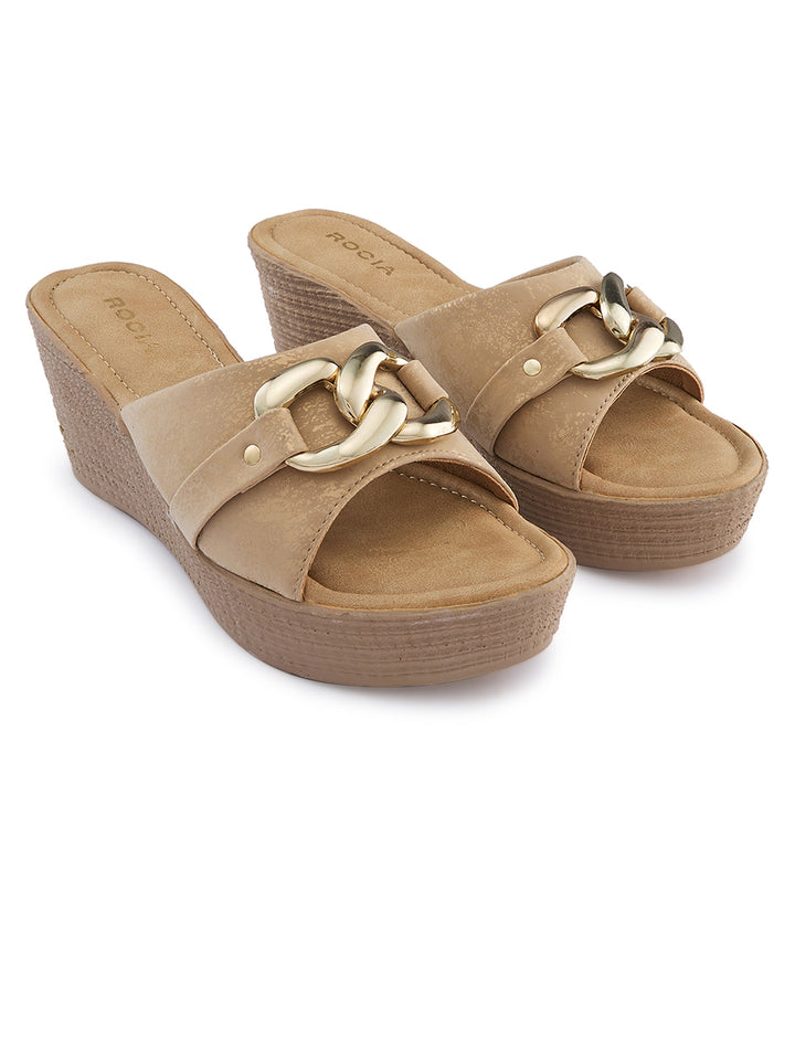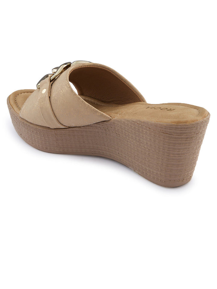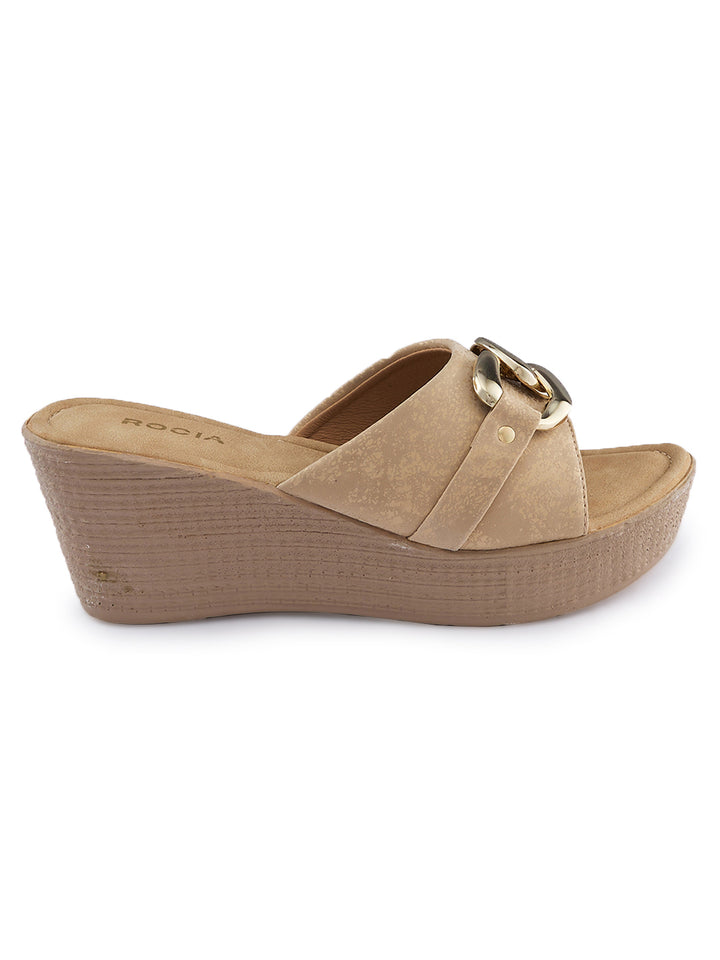 Rocia By Regal Beige Women High Heeled Buckle Platforms