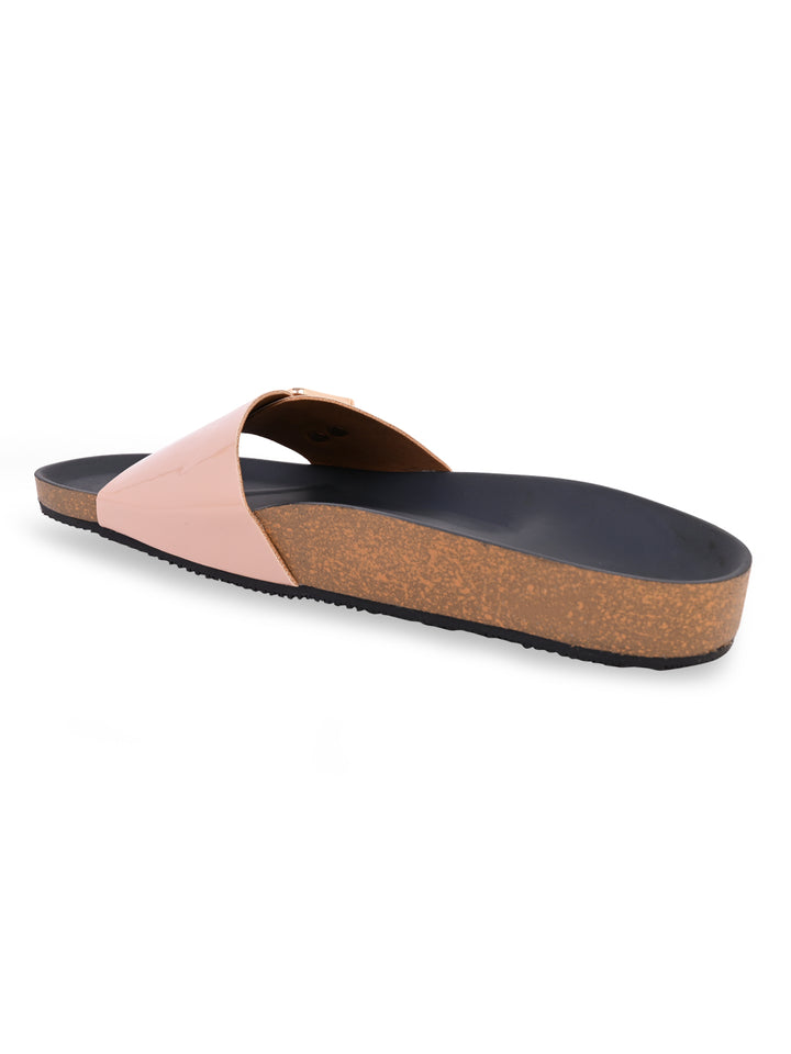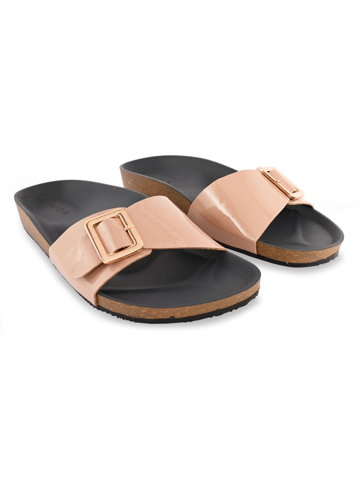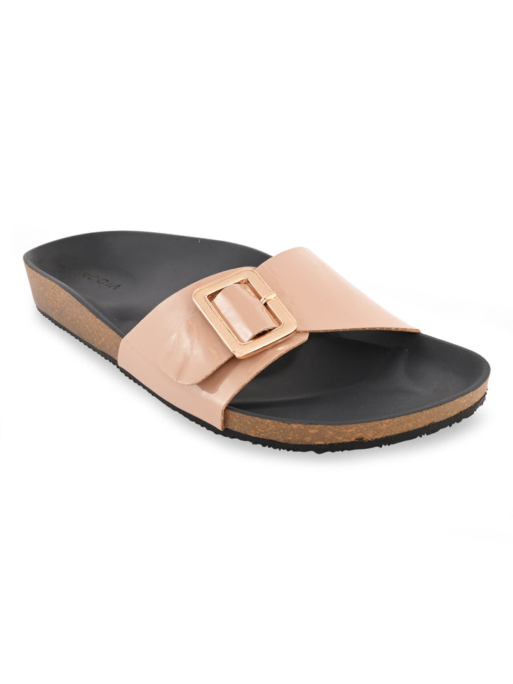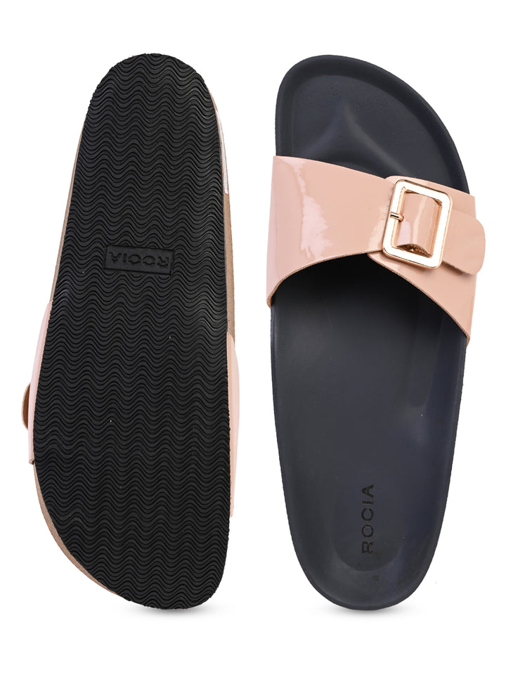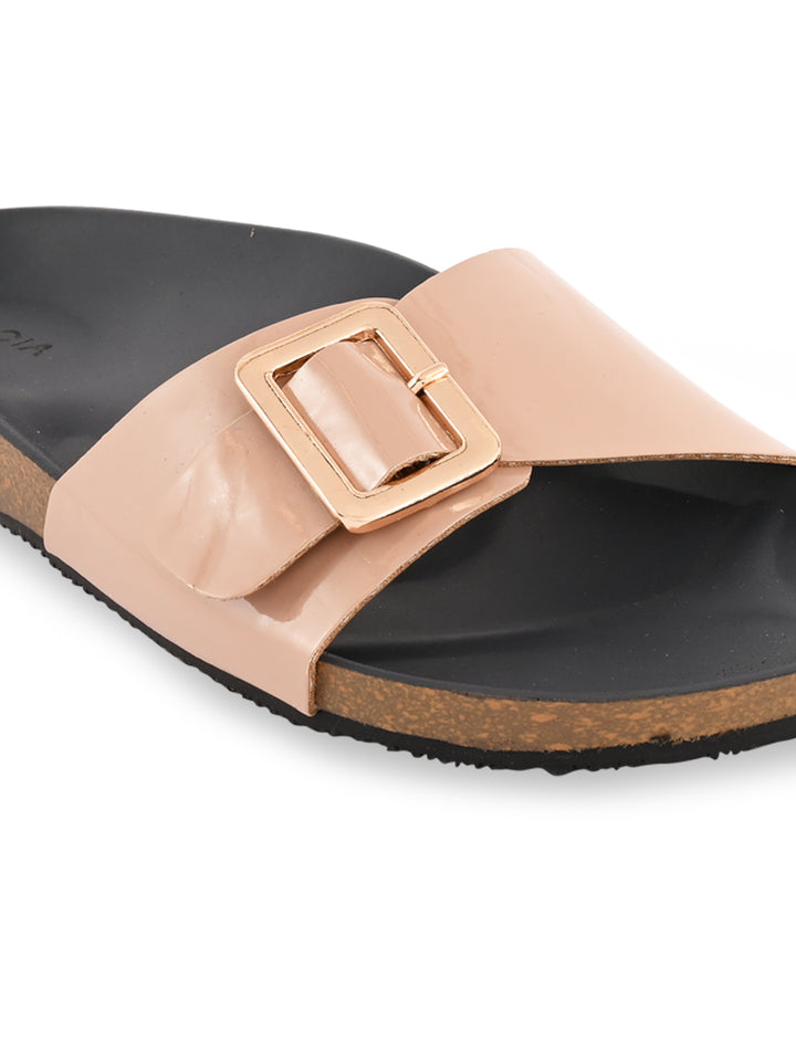 Rocia By Regal Beige Women Patent Slider Flats