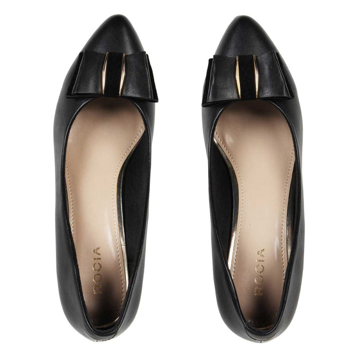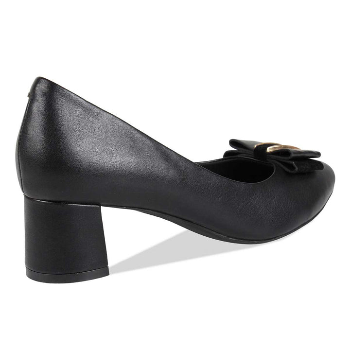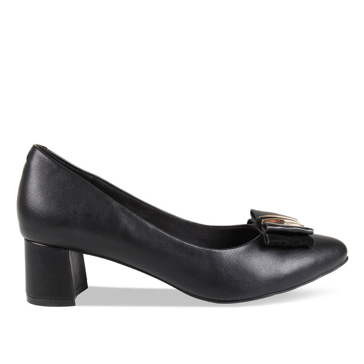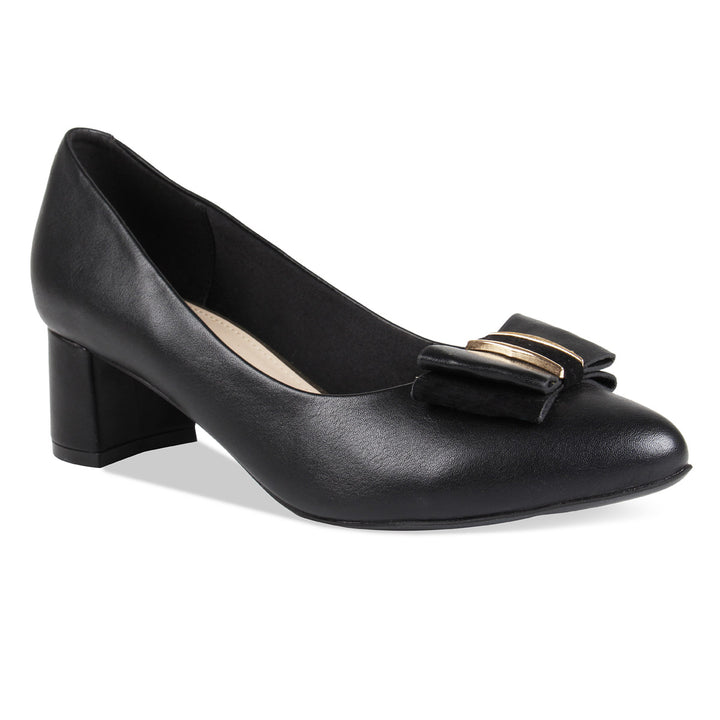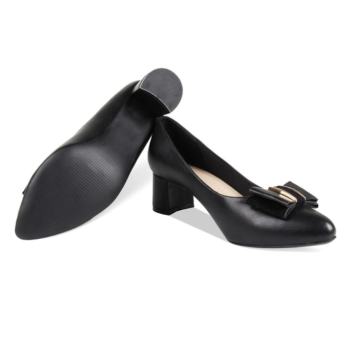 Rocia By Regal Black Women Block Heel Pump With Bow Embellishment