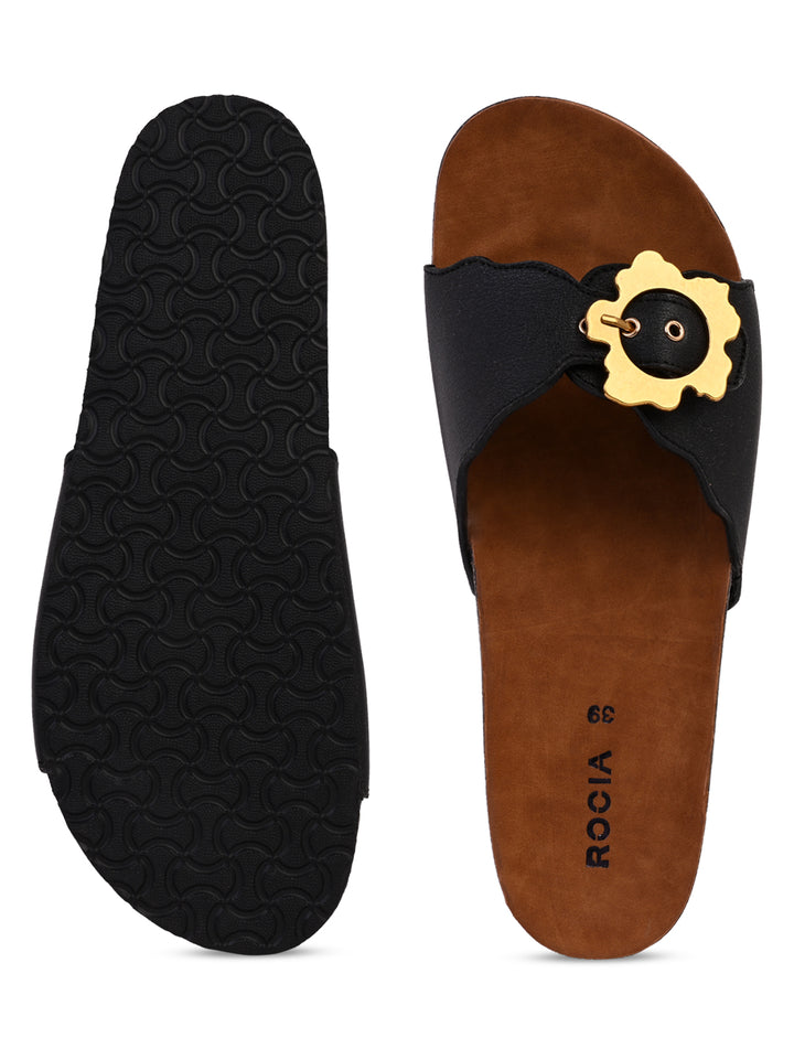 Add versatility to your wardrobe with Women Buckled Slider Flats from Rocia by Regal, made from premium synthetic uppers and a sturdy TPR sole. Featuring an open-toe strapless design with a chic buckle accent, these flats are perfect for casual and summer days. The flat heel ensures ease of wear, making them ideal for daily outings or relaxed occasions.