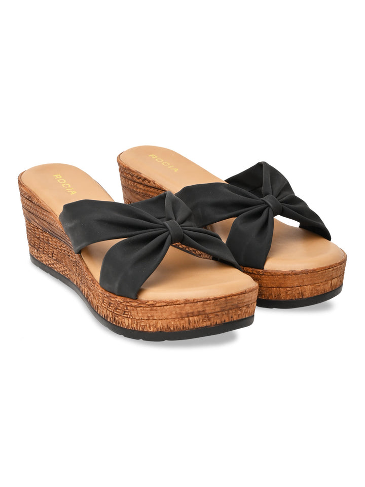 Classic style is yours with Rocia by Regal Women Classic Platforms in Black and Beige. These 3-inch synthetic platform heels with PU soles offer slip-on comfort, open round toes, and versatile design for casual summer occasions.