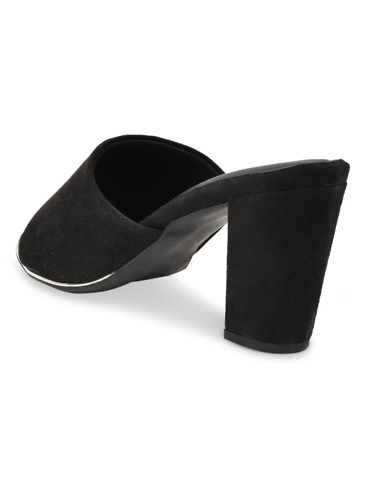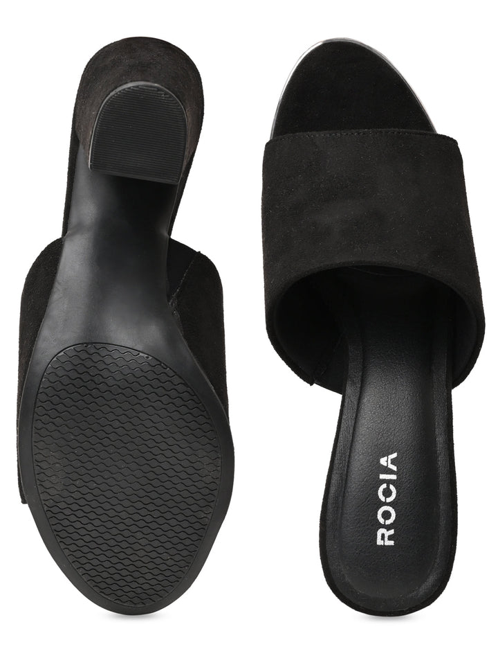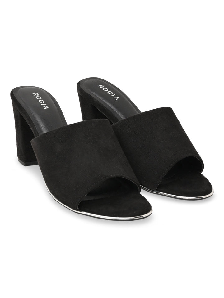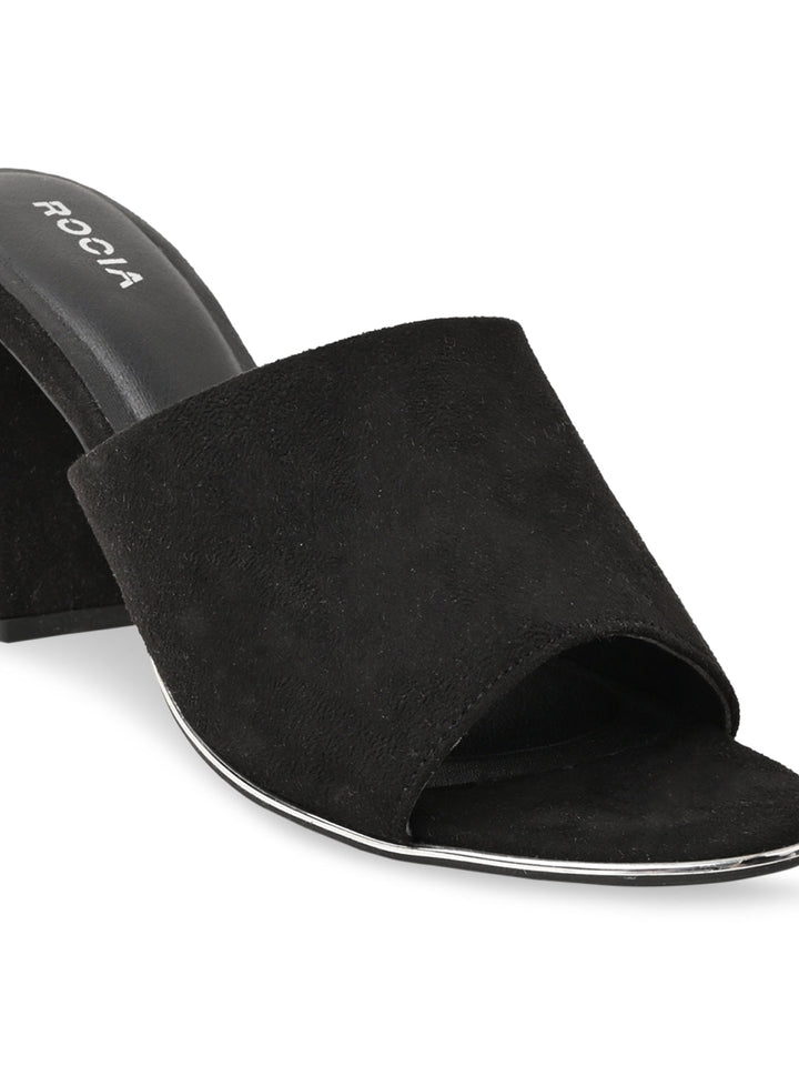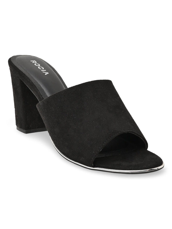 Rocia By Regal Black Women Classic Suede High Block Heel Slip Ons