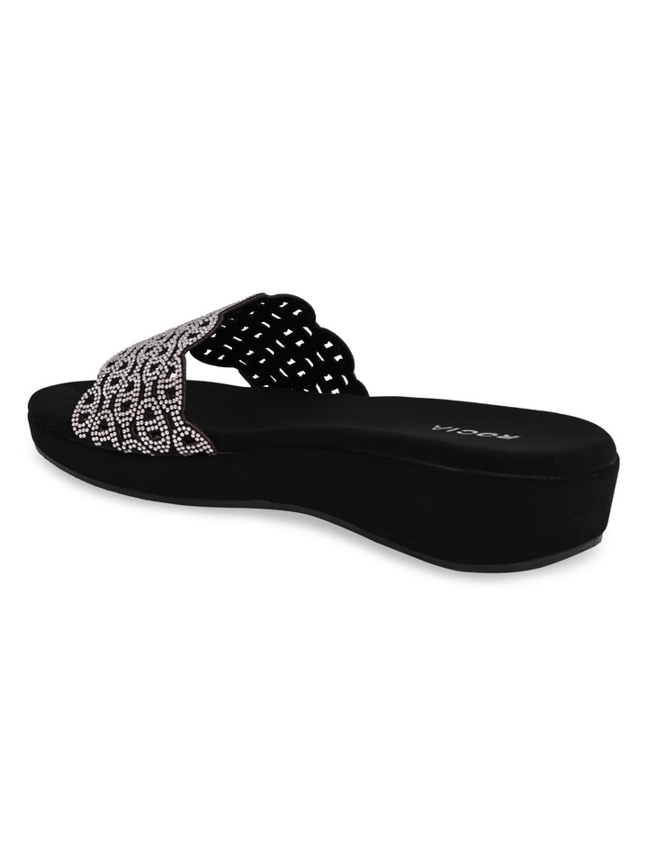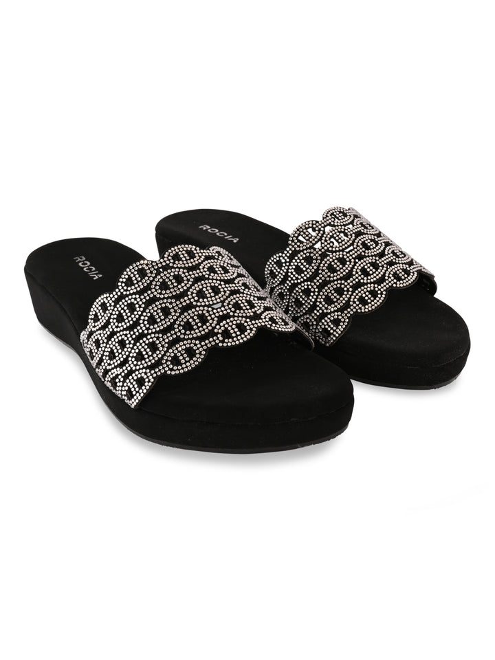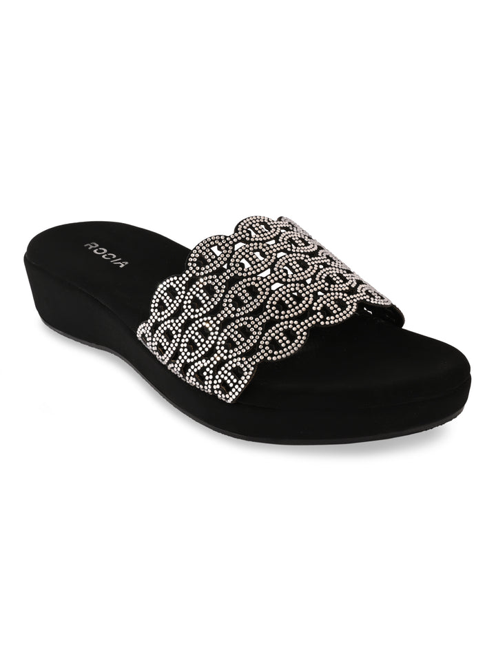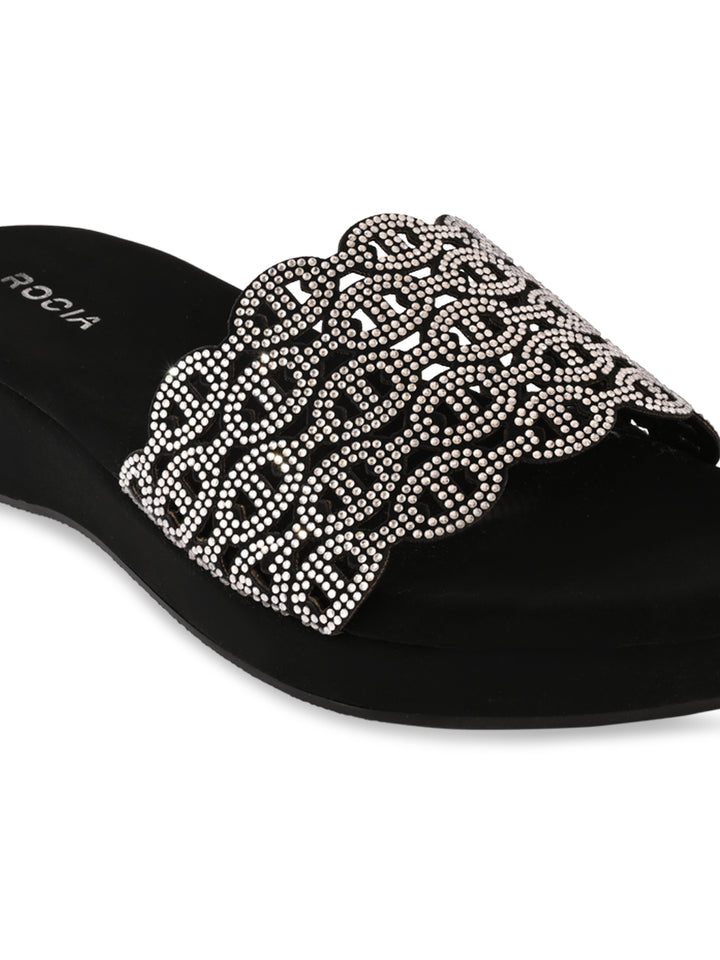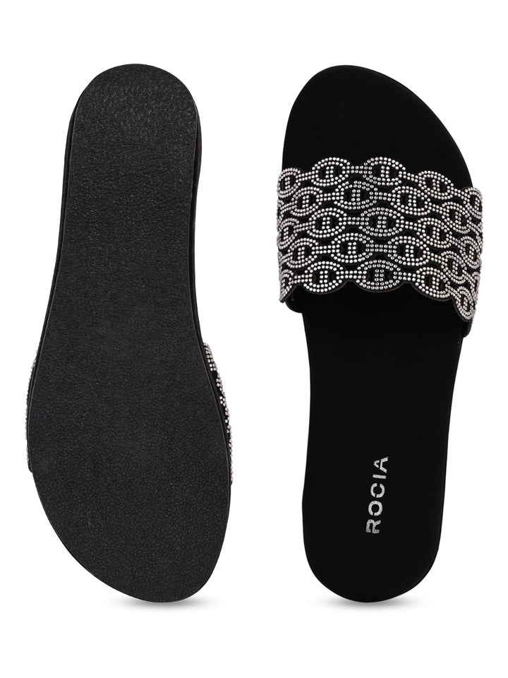 Rocia By Regal Black Women Diamond Embellished Sliders