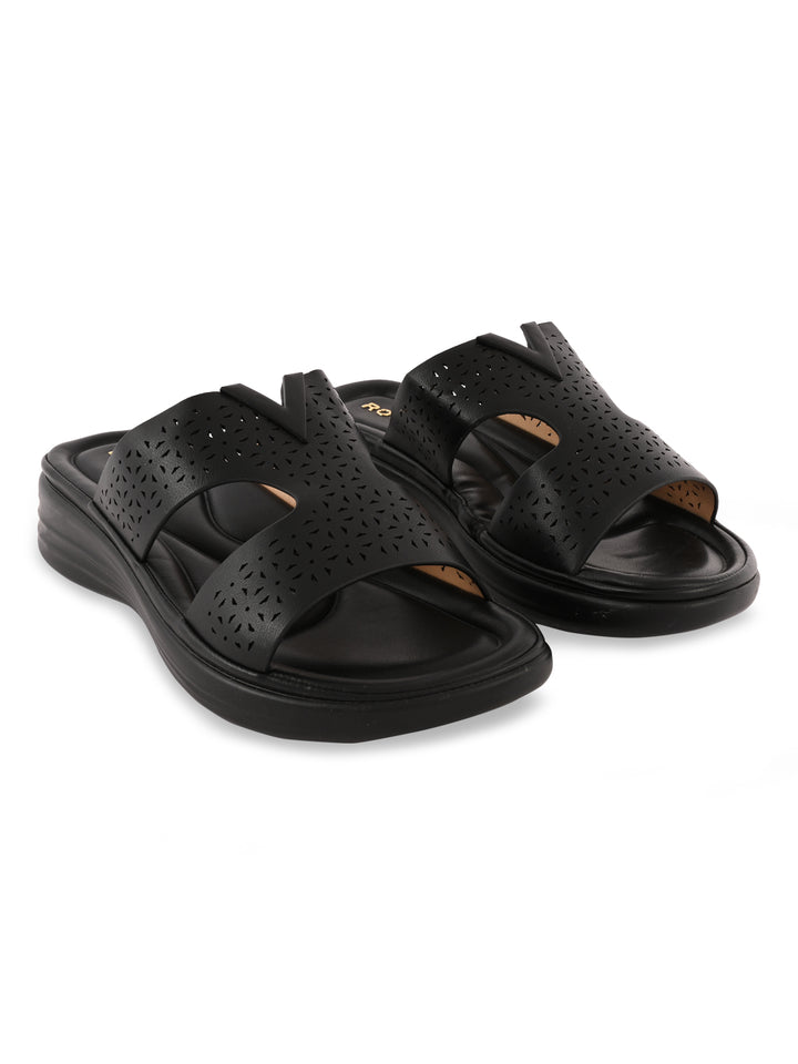 Refresh your footwear collection with Women Laser Cut Comfort Flats from Rocia by Regal, featuring intricate laser-cut detailing on a synthetic upper and a comfortable PU sole. Designed with a strapless, open-toe silhouette, these flats are perfect for adding elegance to casual and summer looks. The flat heel offers ease of movement, making them your go-to choice for everyday chic comfort.