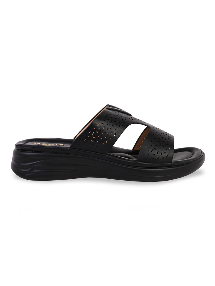 Rocia By Regal Black Women Laser Cut Comfort Flats