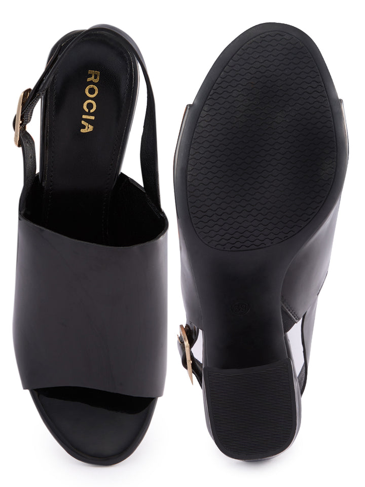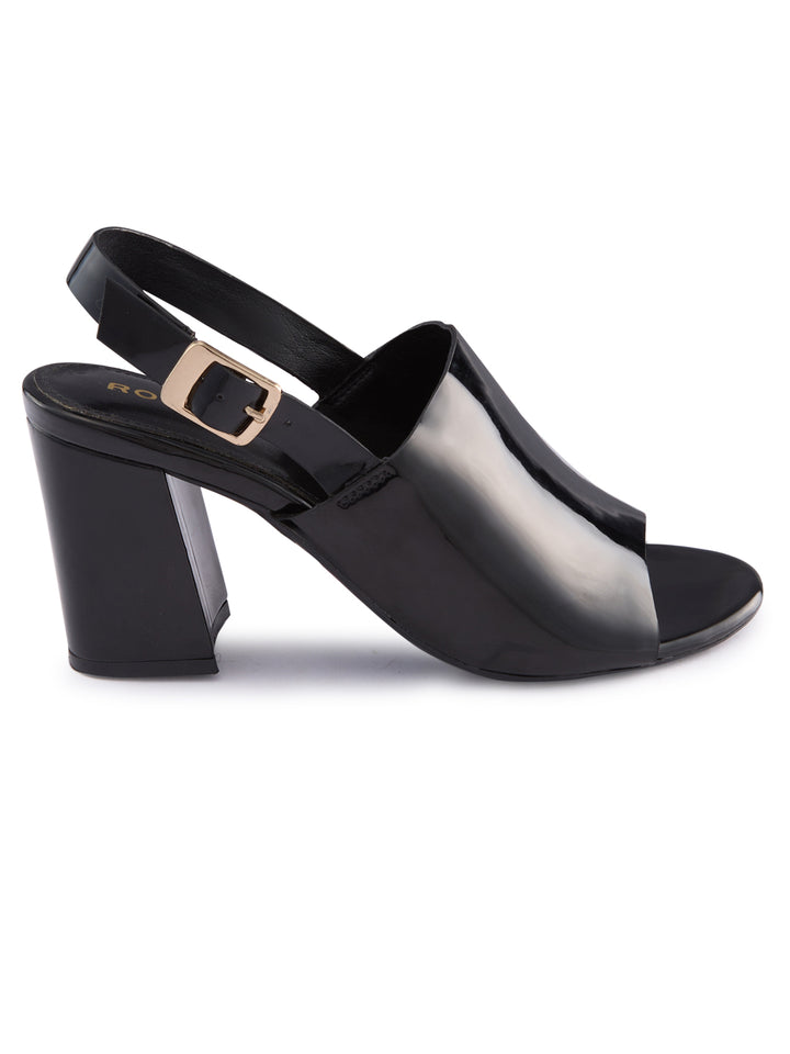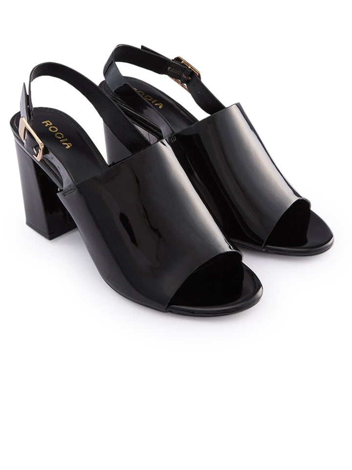 Rocia By Regal Black Women Patent High Block Heel Stylish Sandals
