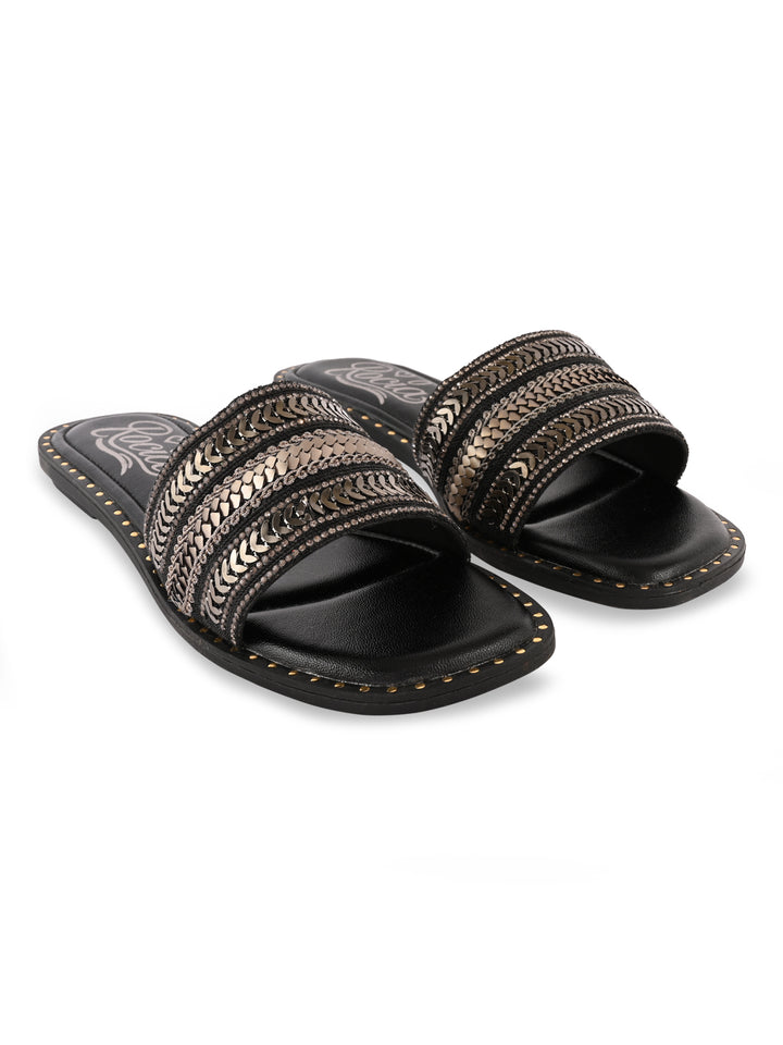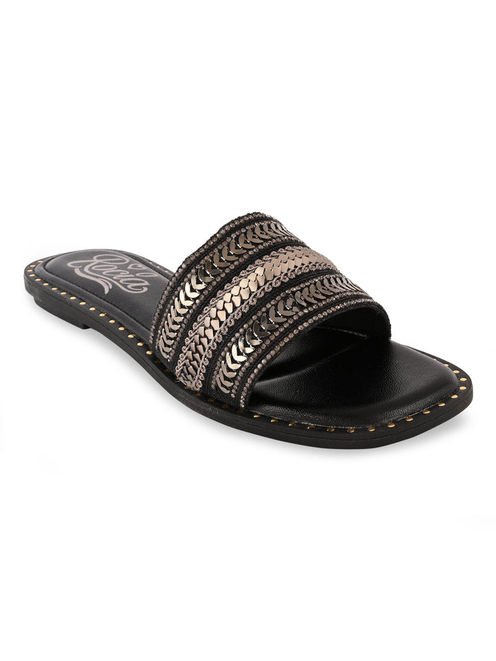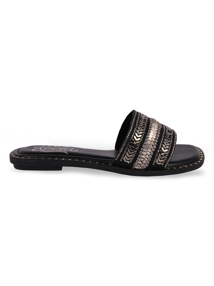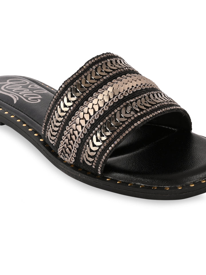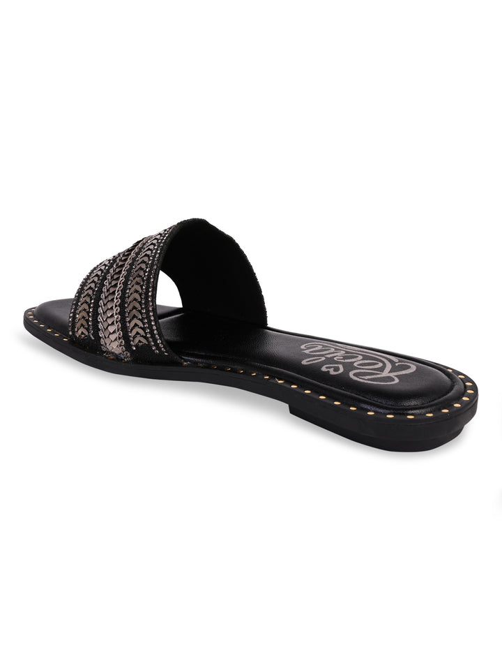 Rocia By Regal Black Women Pretty Embellished Sliders
