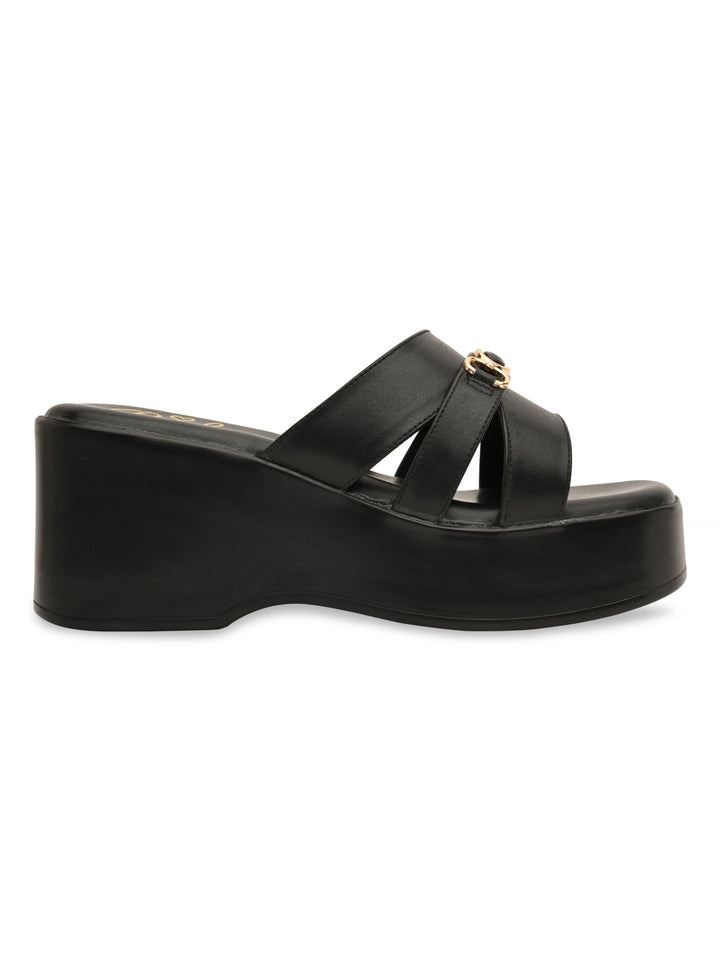 Rocia By Regal Black Women Smart Buckled Casual Platforms