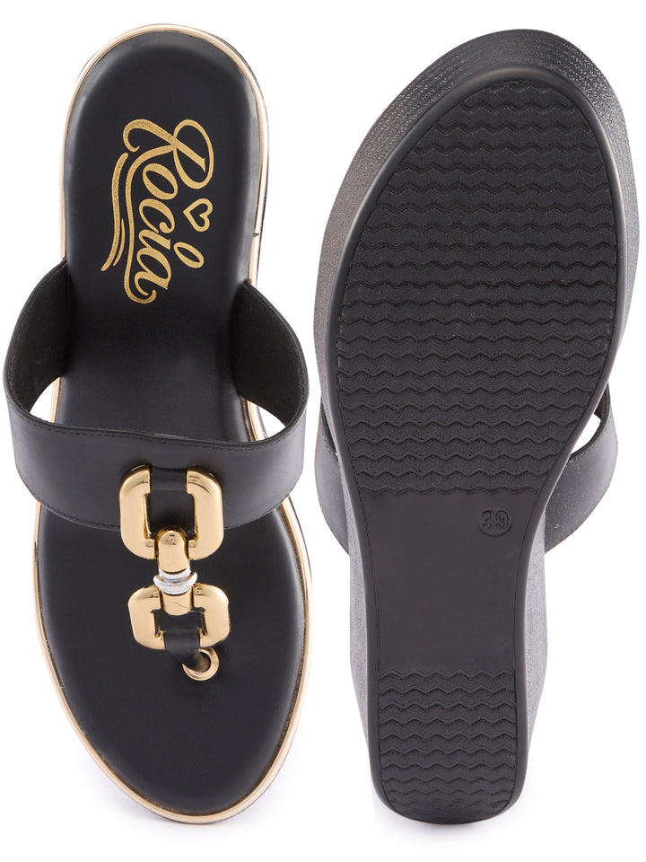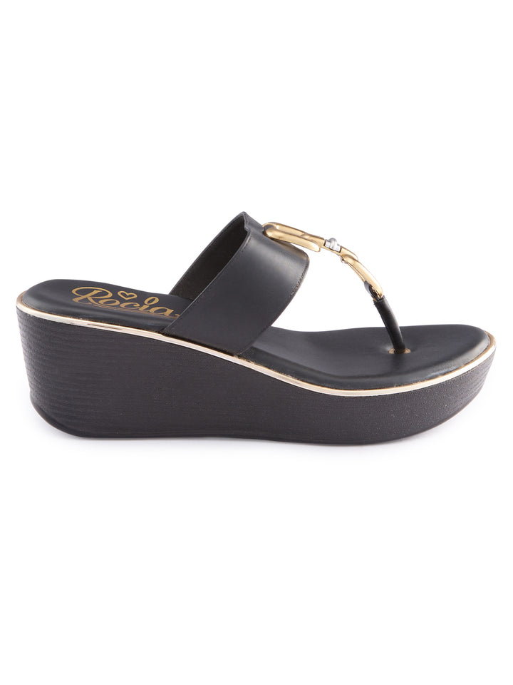 Rocia By Regal Black Women Smart Casual Buckled Platforms