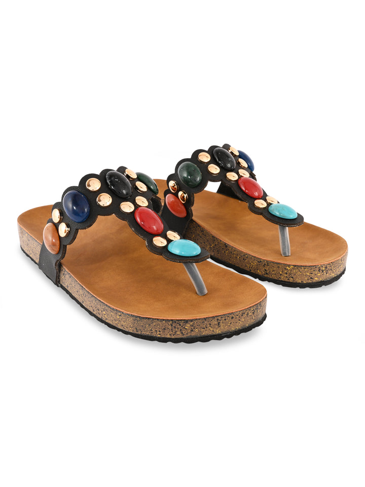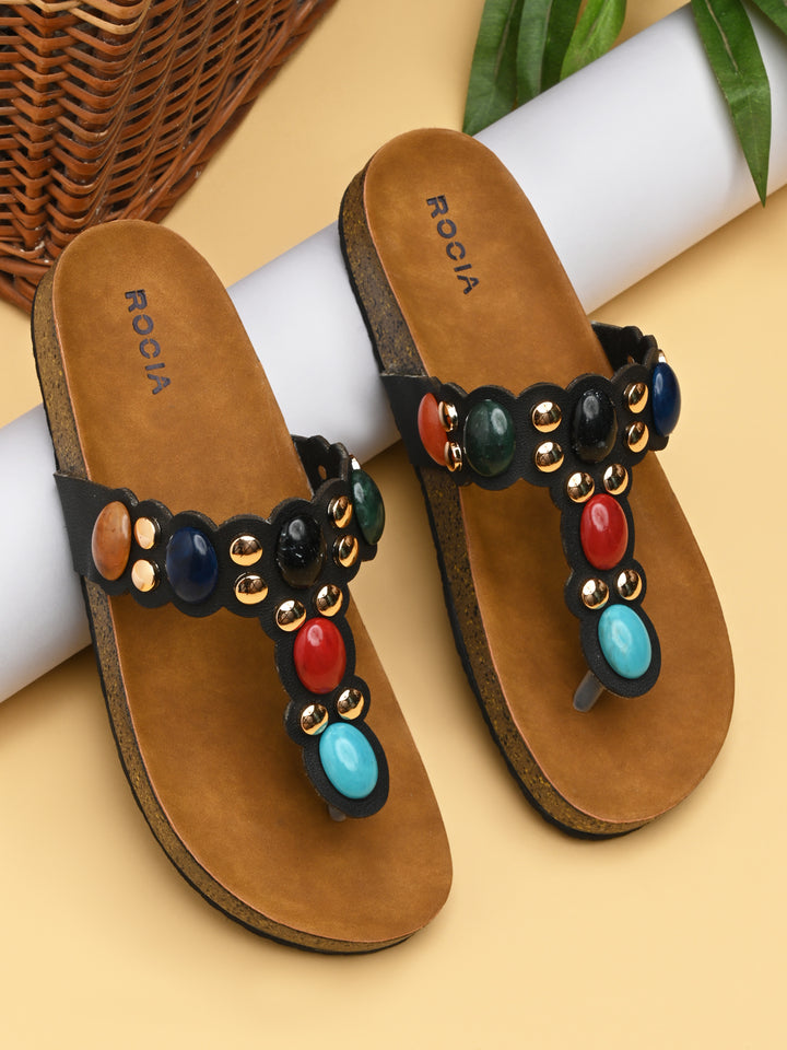 Add sparkle to your steps with Women Stone Embellished Flats from Rocia by Regal. Designed with a synthetic upper and sturdy TPR sole, these flats feature a chic strapless open-toe style decorated with elegant stone detailing. Ideal for casual wear and summer occasions, their flat heel provides effortless comfort while elevating your look with a touch of glam.