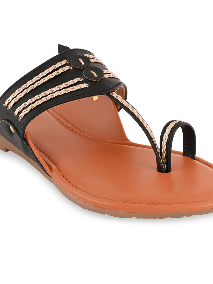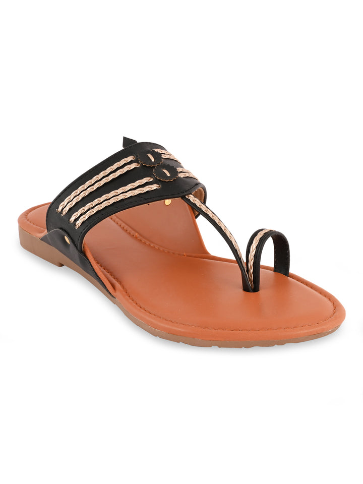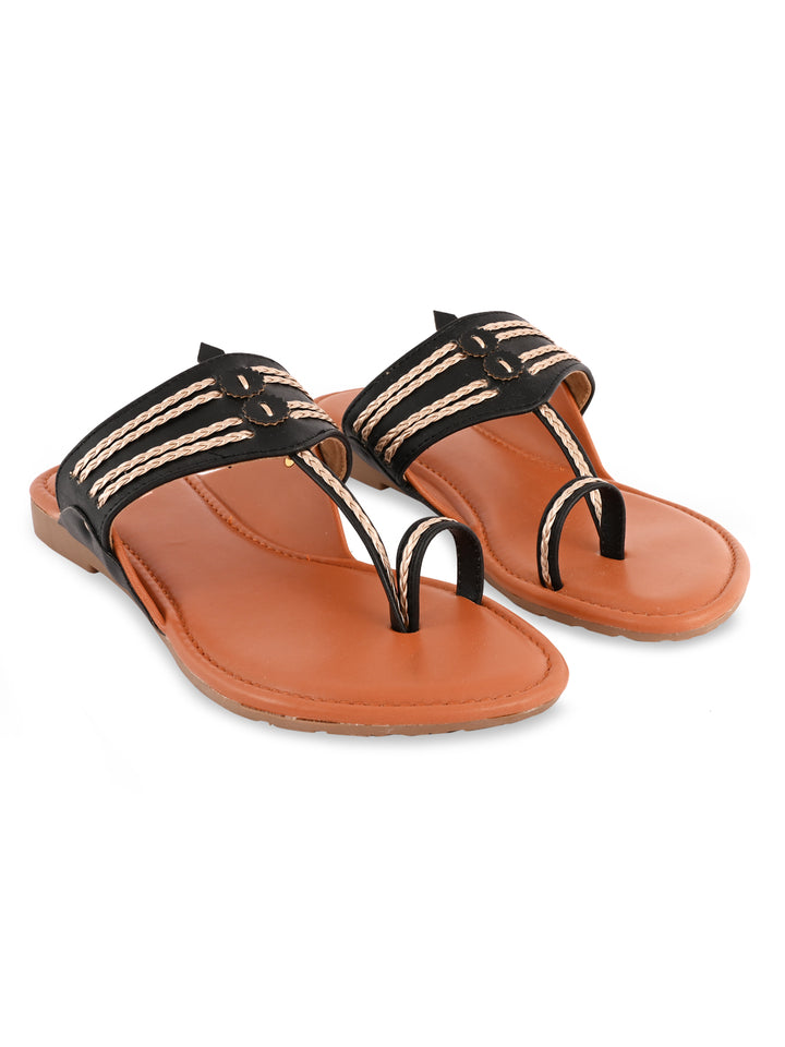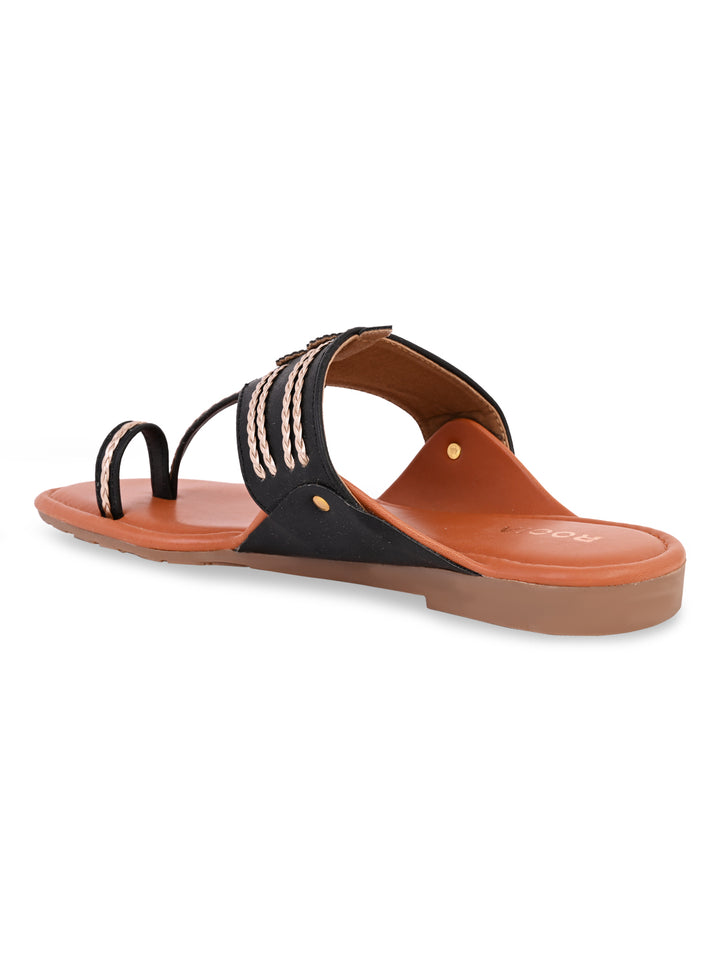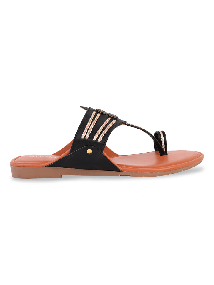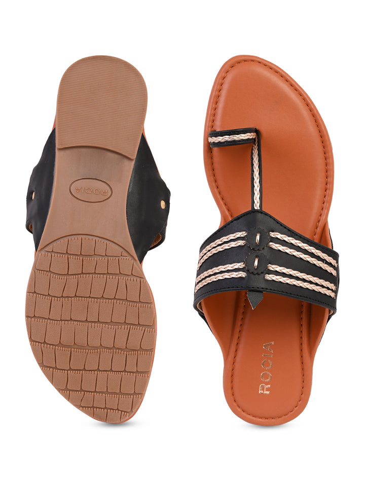 Rocia By Regal Black Women Stylish Flat Kolhapuris