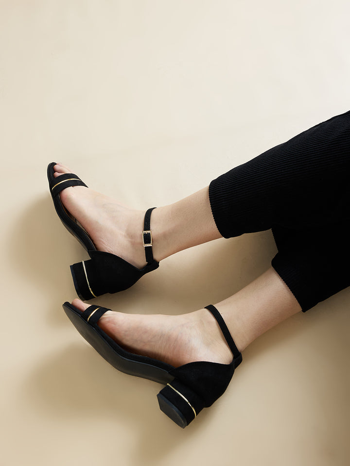 Walk in luxury with Rocia's Suede Ankle Strap Sandals, offering a sleek design and a secure fit for added elegance. Heel Height: 1.5 inches