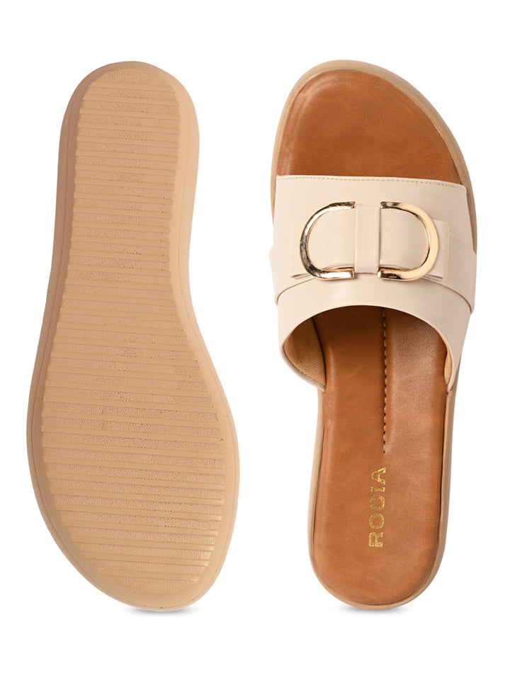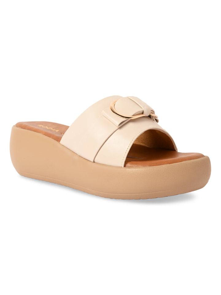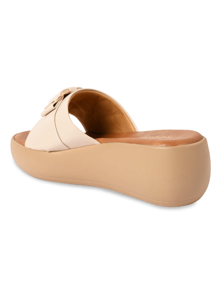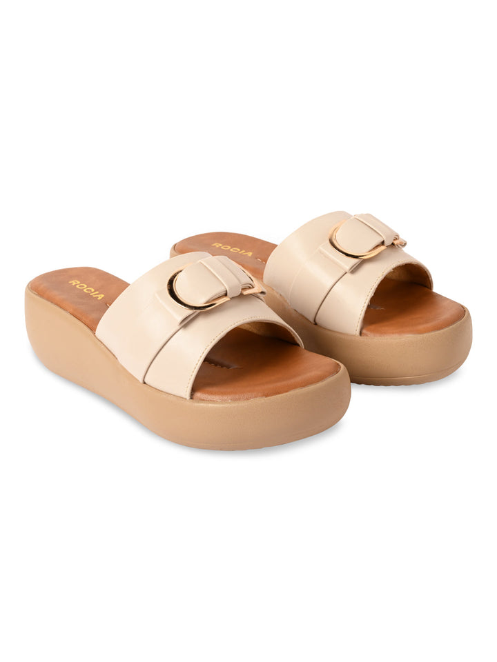 Rocia By Regal Cream Women Classic Buckled Platforms
