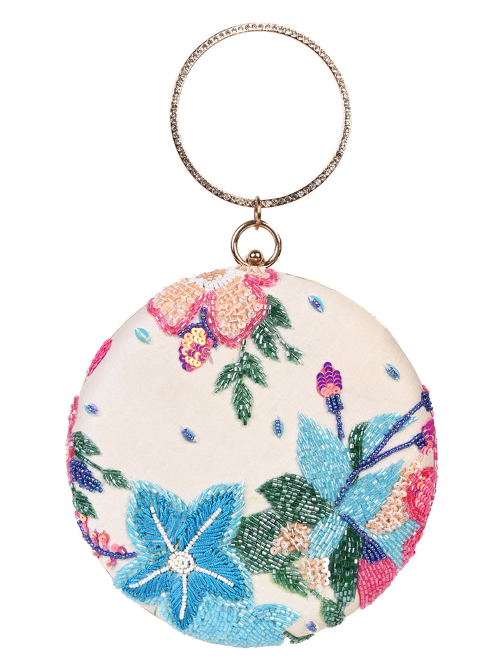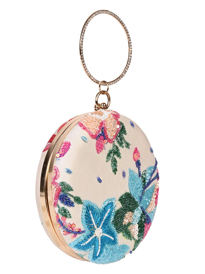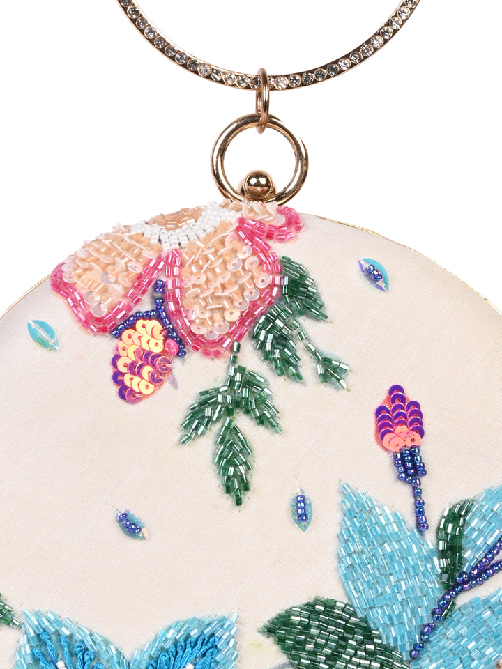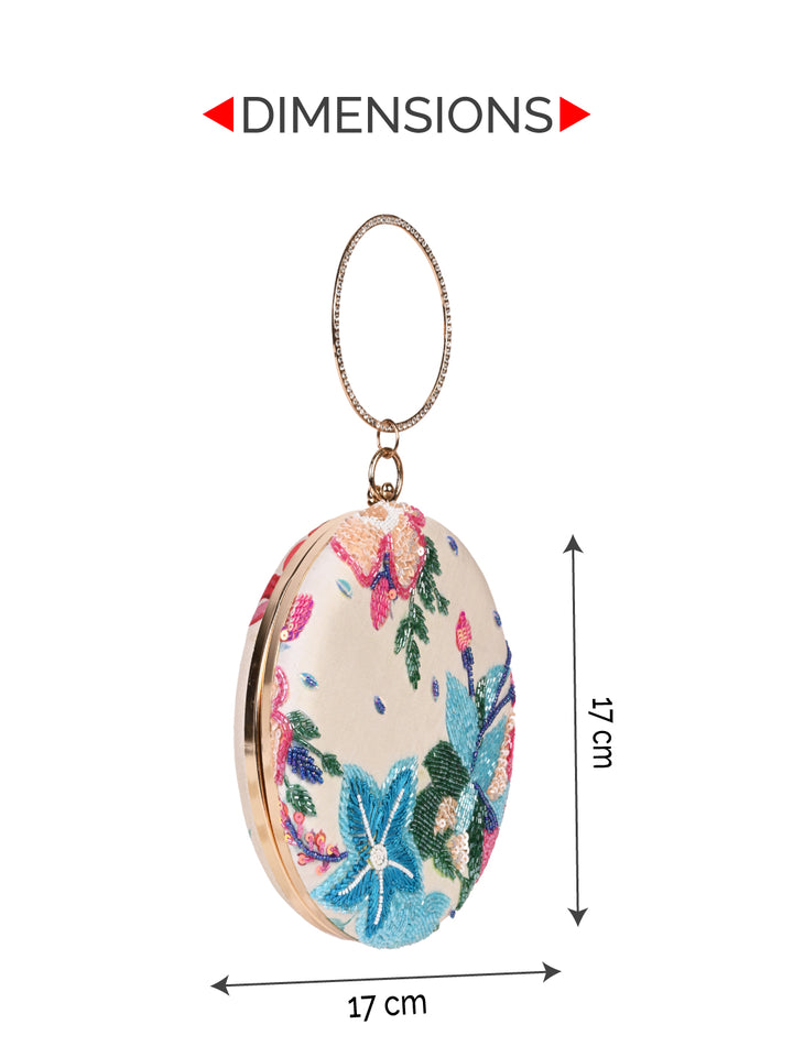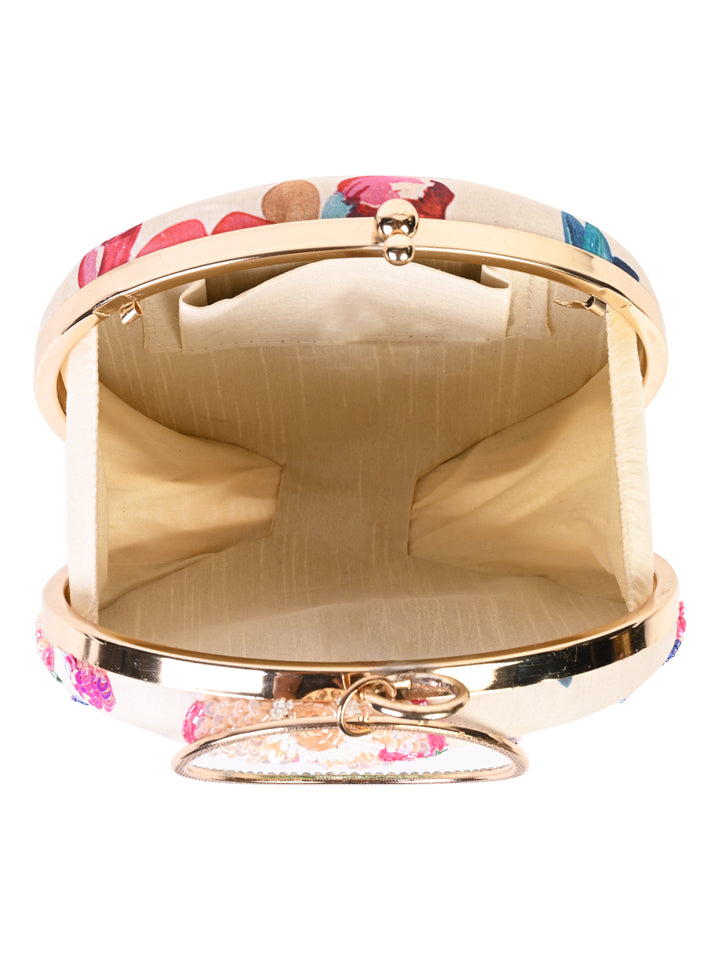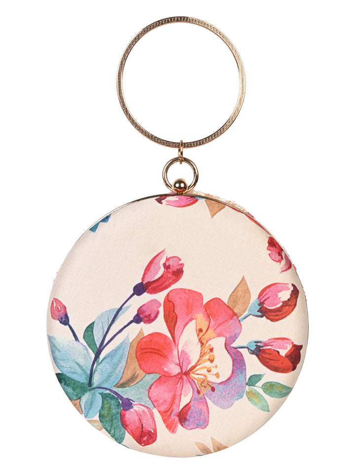 Rocia By Regal Cream Women Stylish Printed Round Metal Clutch