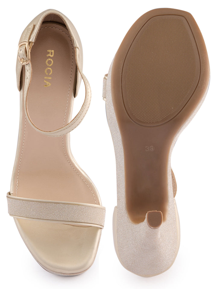 Rocia By Regal Gold Women Ankle Strap High Heel Stiletto