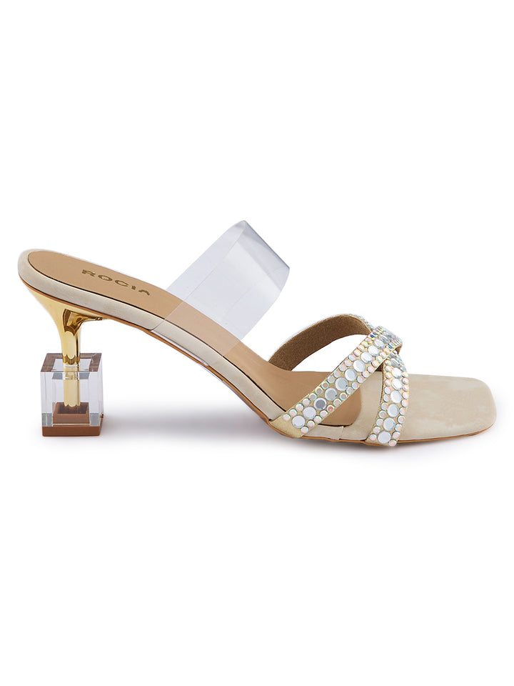 Go bold and playful with these funky criss-cross stilettos adorned with diamond studs. The dynamic strap design adds a fun twist to classic heels, while the sparkle keeps things glamorous. Perfect for parties and high-fashion looks, they bring a burst of confidence to your style. Walk tall, shine brighter.