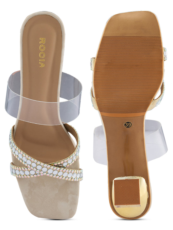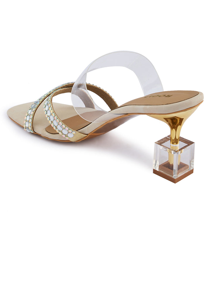 Rocia By Regal Gold Women Diamond Studded Criss Cross Funky Stilettos